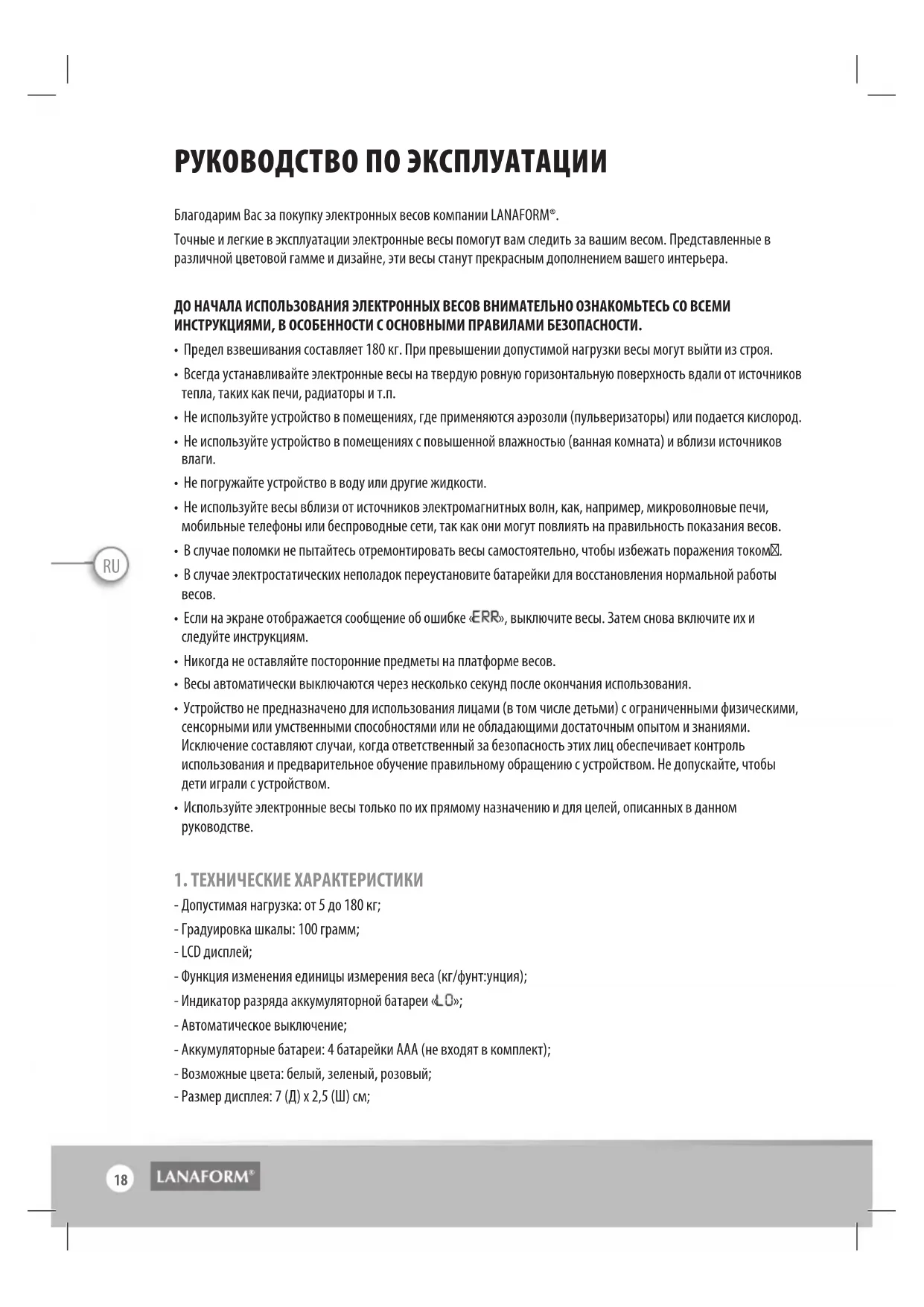 LA090303 - Весы LANAFORM - Бесплатное руководство пользователя