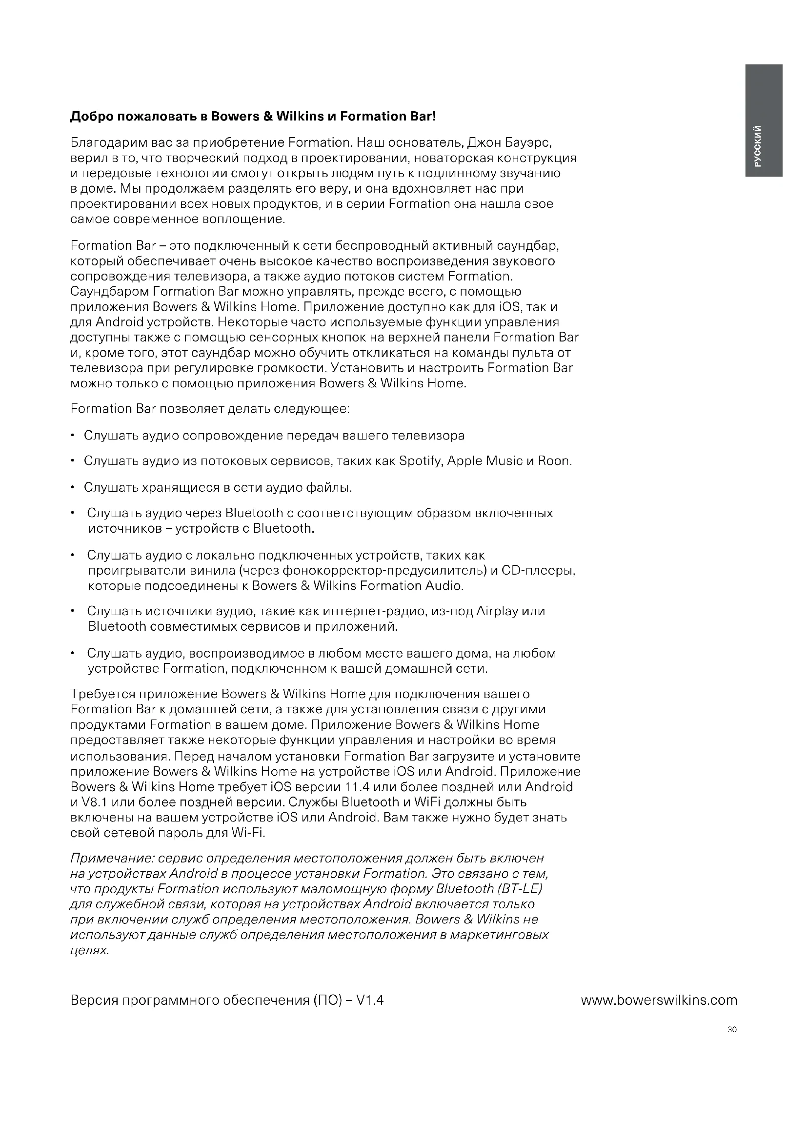 РУКОВОДСТВО ПОЛЬЗОВАТЕЛЯ Formation Bar BOWERS & WILKINS