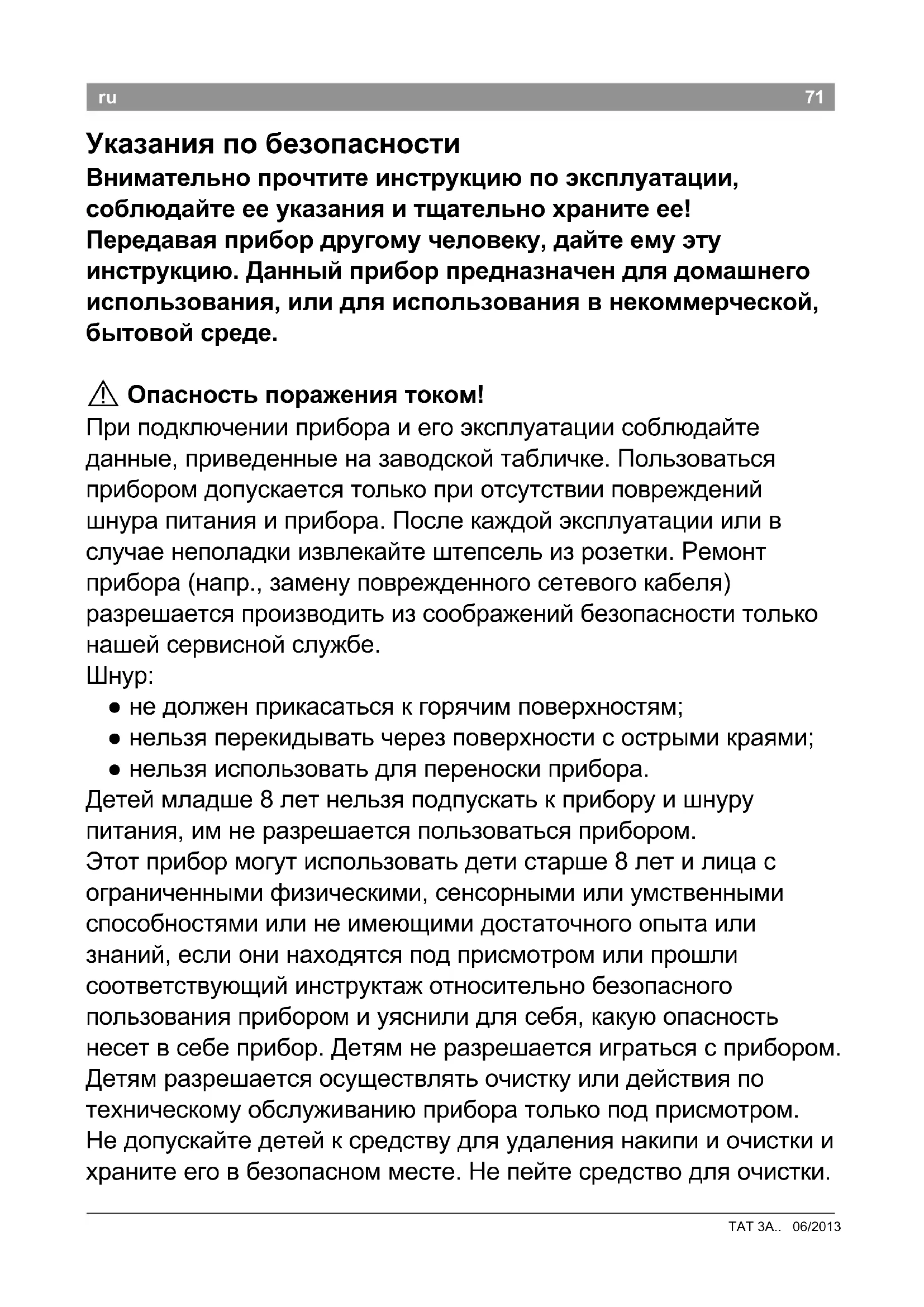 Опасность удушения! Не разрешайте детям играть с упаковочным материалом.73 TAT 3A.. 06/2013