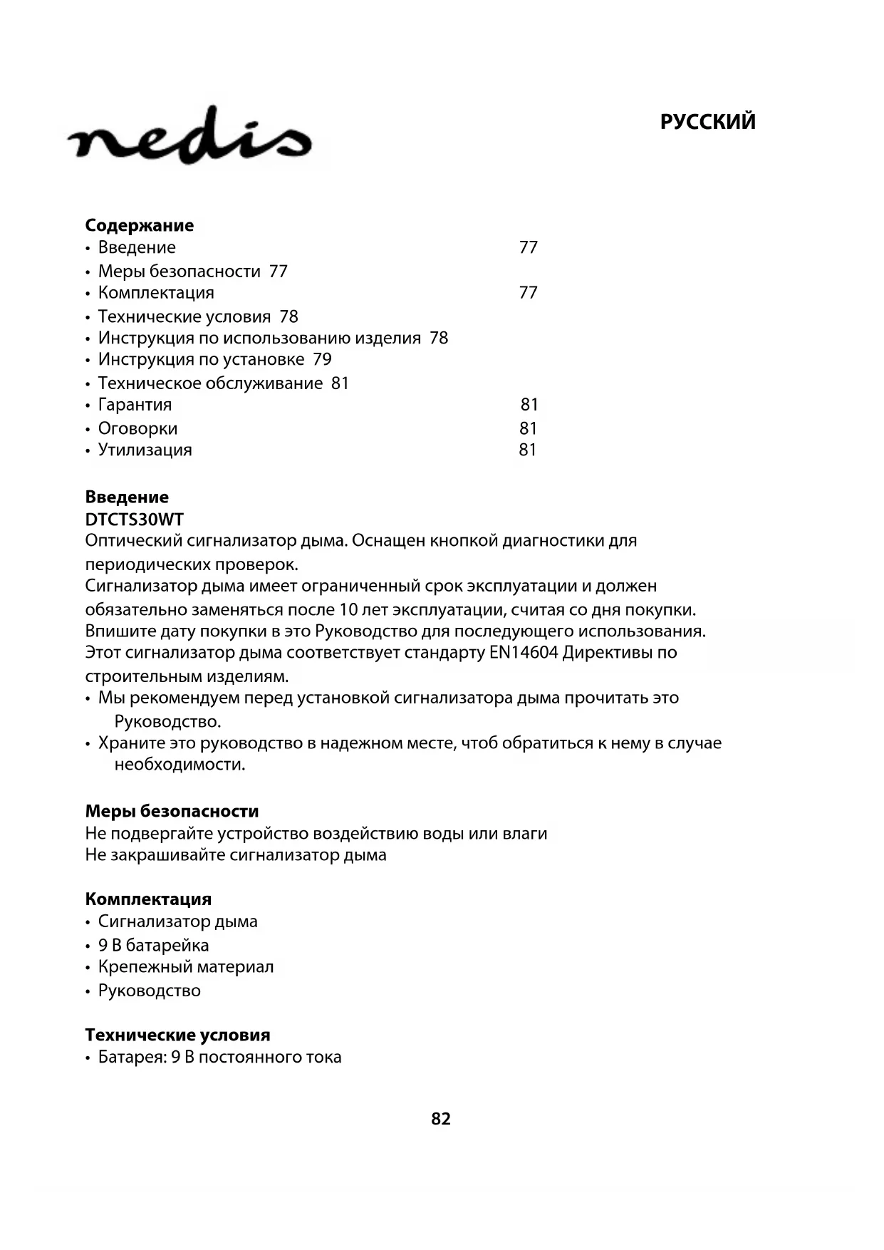 DTCTS30WT - Детектор дыма NEDIS - Бесплатное руководство пользователя