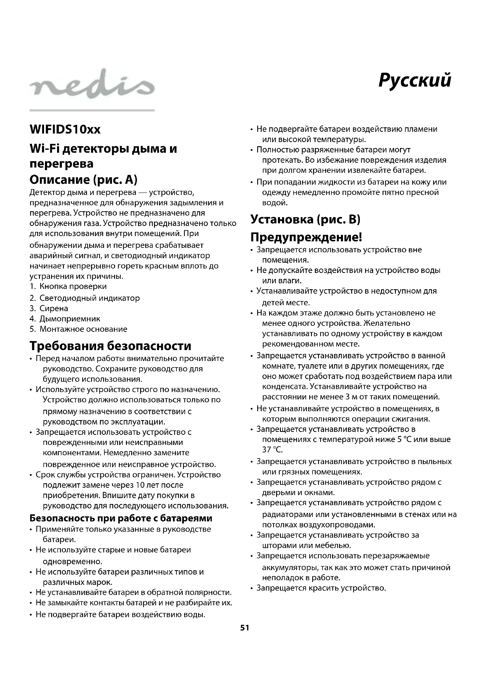 Скачайте инструкцию для вашего Детектор дыма в формате PDF бесплатно! Найдите своё руководство WIFIDS10WT - NEDIS и возьмите своё электронное устройство обратно в руки. На этой странице опубликованы все документы, необходимые для использования вашего устройства. WIFIDS10WT бренда NEDIS.