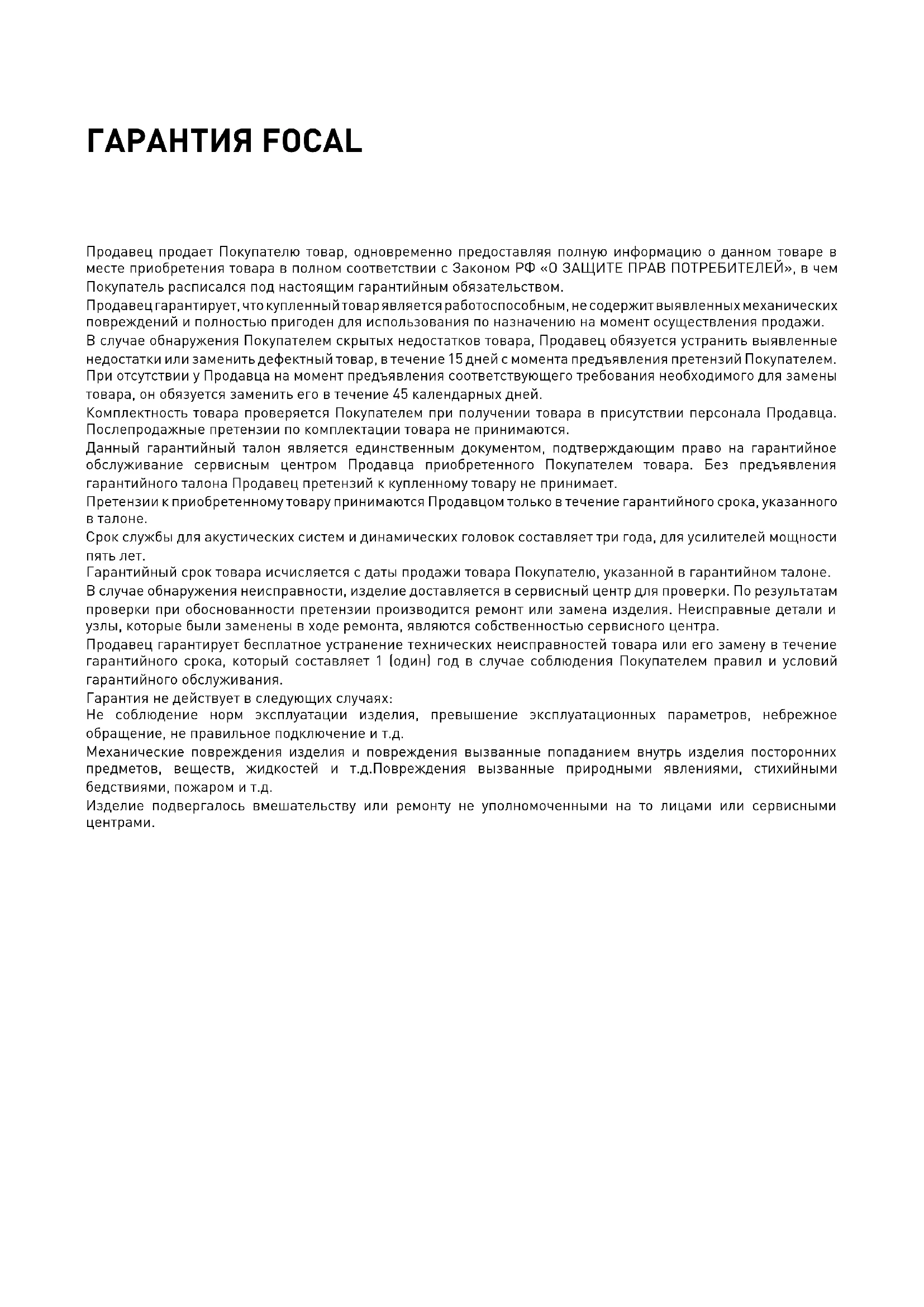 Срок службы для акустических систем и динамических головок составляет три года, для усилителей мощности
