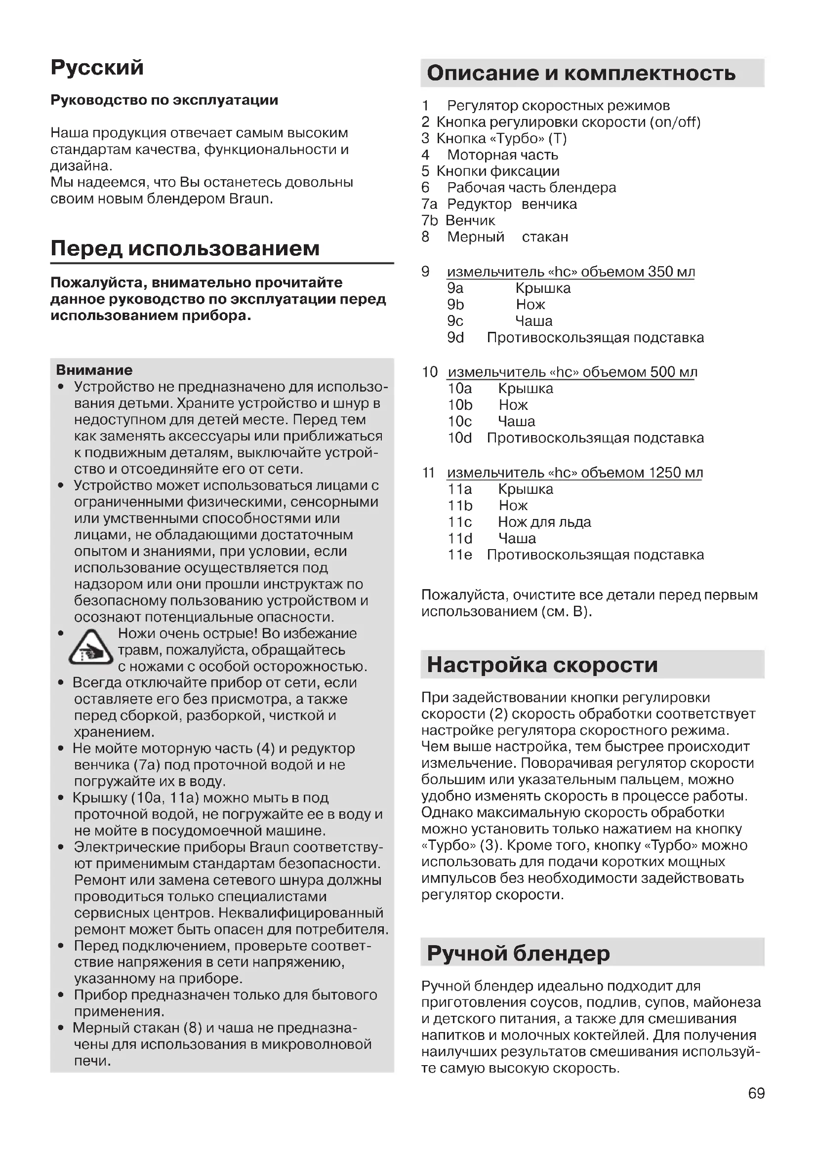 Мы надеемся, что Вы останетесь довольны своим новым блендером Braun. Перед использованием Пожалуйста, внимательно прочитайте данное руководство по эксплуатации перед использованием прибора.
