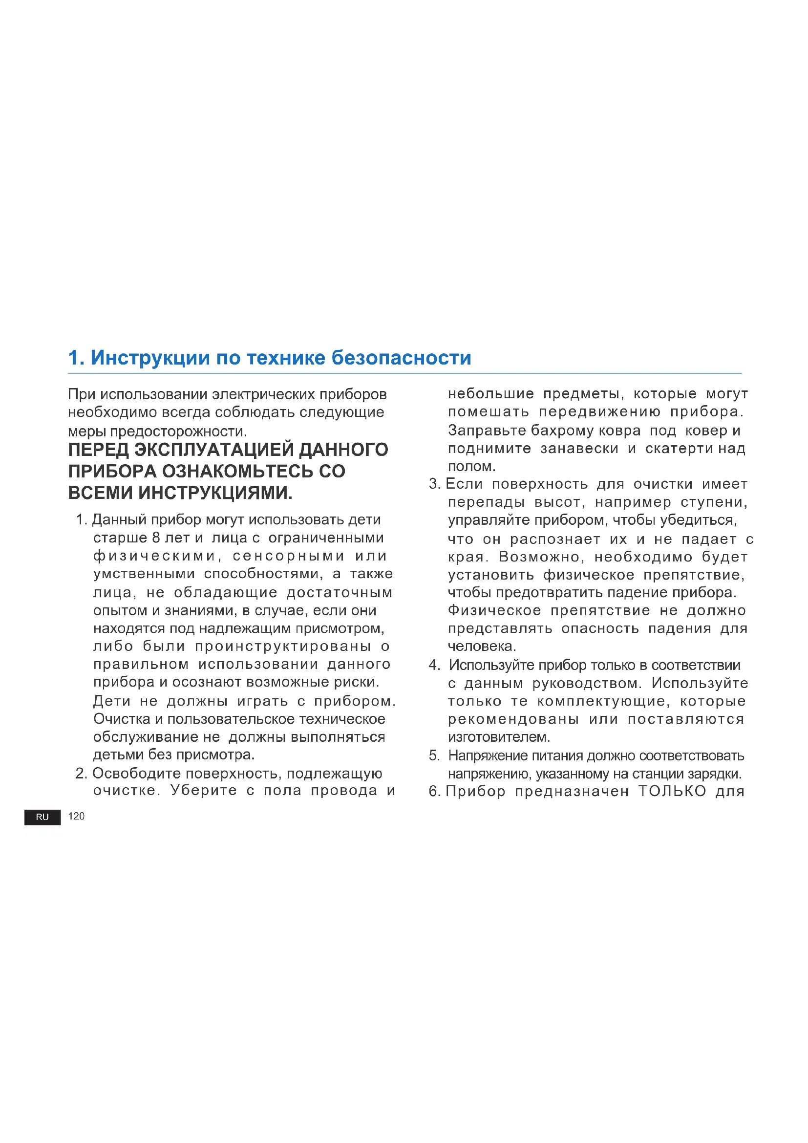 очистке. Уберите с пола провода и небольшие предметы, которые могут помешать передвижению прибора. Заправьте бахрому ковра под ковер и поднимите занавески и скатерти над