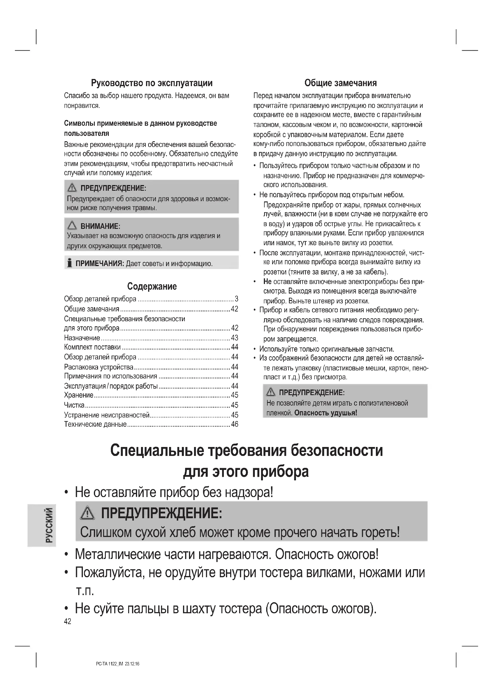 - Не суйте пальцы в шахту тостера (Опасность ожогов).43 PC-TA 1122_IM 23.12.16