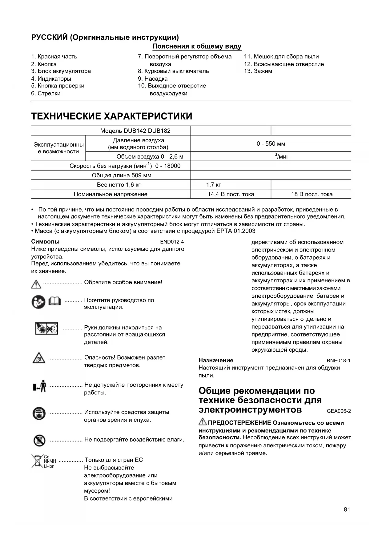 Найдите руководство к устройству бесплатно DUB182Z MAKITA в формате PDF.
