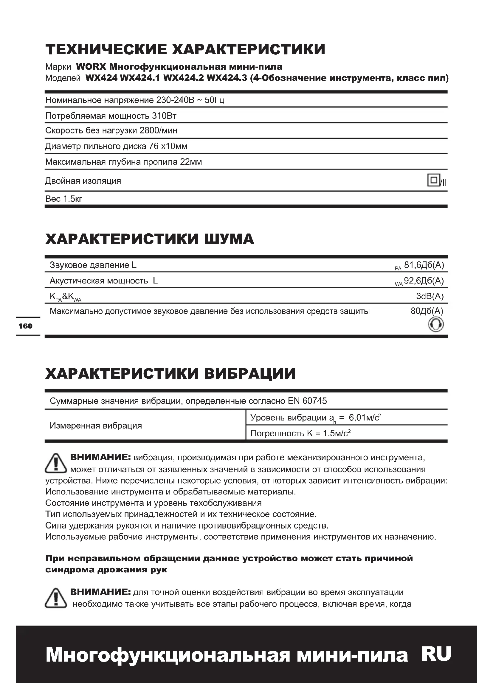 РУКОВОДСТВО ПОЛЬЗОВАТЕЛЯ WX424.2 WORX