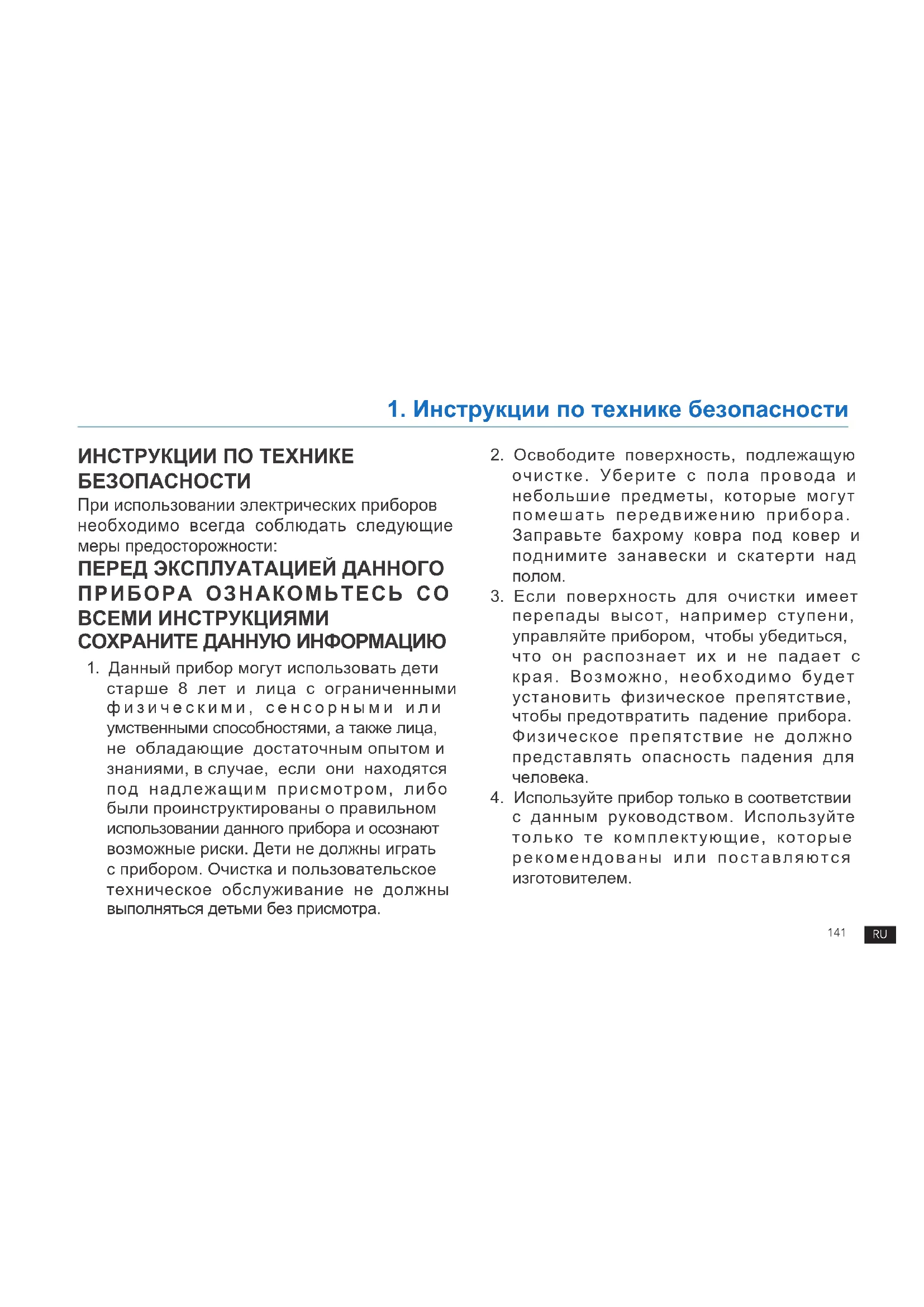 с данным руководством. Используйте только те комплектующие, которые рекомендованы или поставляются изготовителем. ИНСТРУКЦИИ ПО ТЕХНИКЕ БЕЗОПАСНОСТИ При использовании электрических приборов необходимо всегда соблюдать следующие меры предосторожности: ПЕРЕД ЭКСПЛУАТАЦИЕЙ ДАННОГО ПРИБОРА ОЗНАКОМЬТЕСЬ СО ВСЕМИ ИНСТРУКЦИЯМИ СОХРАНИТЕ ДАННУЮ ИНФОРМАЦИЮ142