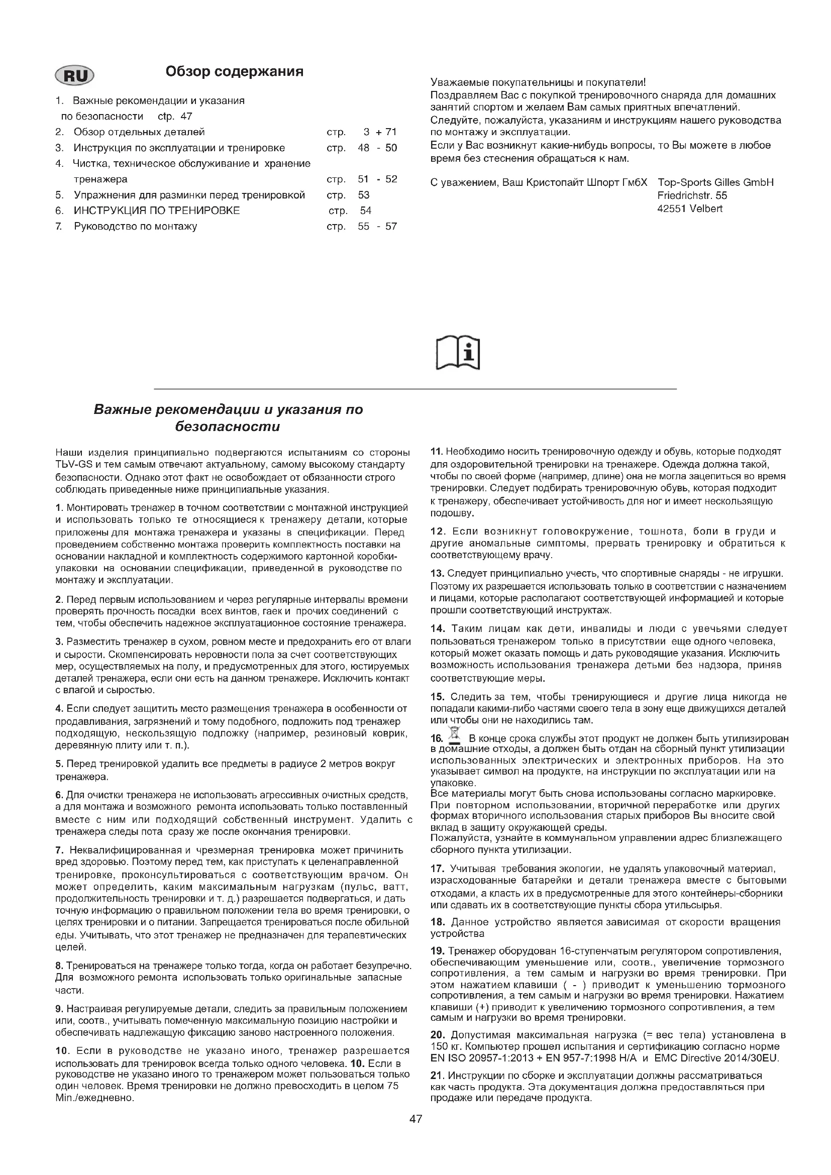 РУКОВОДСТВО ПОЛЬЗОВАТЕЛЯ Como Christopeit