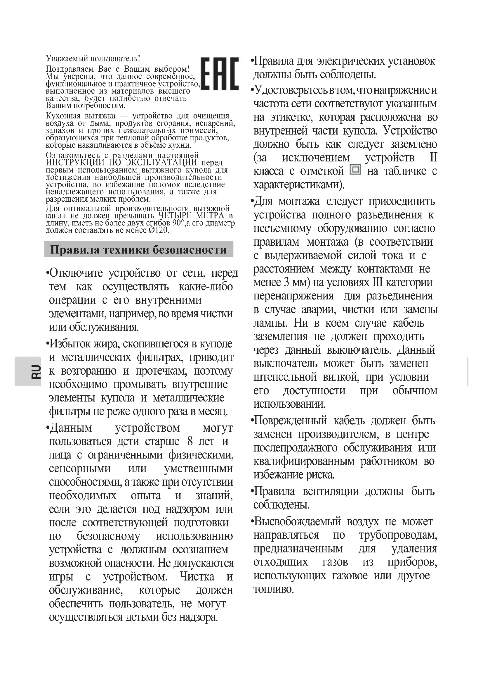 - Вытяжной купол предназначен для бытового использования и исключительно для улавливания и очистки воздуха от продуктов приготовления пищи.