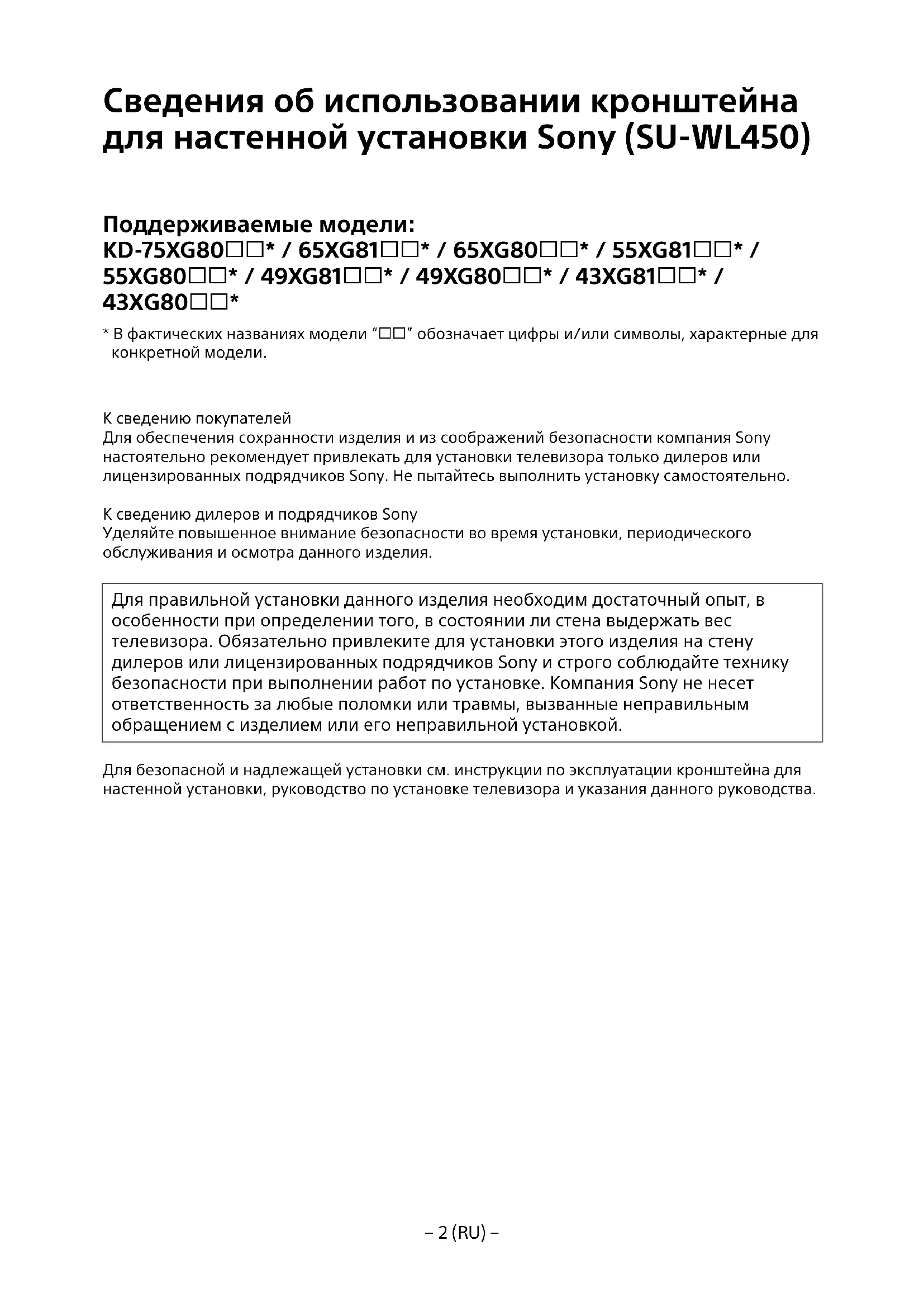 РУКОВОДСТВО ПОЛЬЗОВАТЕЛЯ Bravia KD55XG8196 SONY