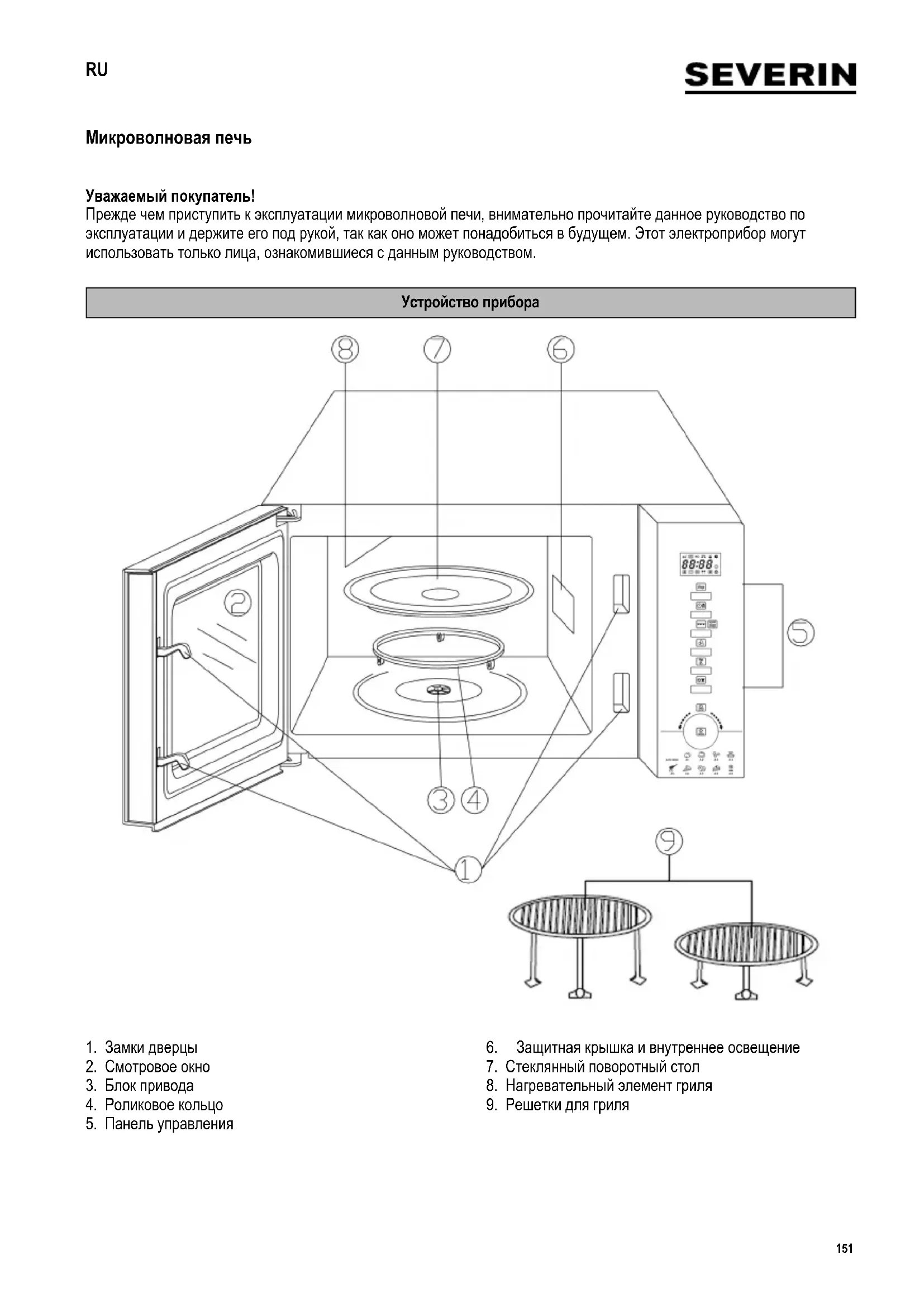 Микроволновая печь Уважаемый покупатель! Прежде чем приступить к эксплуатации микроволновой печи, внимательно прочитайте данное руководство по эксплуатации и держите его под рукой, так как оно может понадобиться в будущем. Этот электроприбор могут использовать только лица, ознакомившиеся с данным руководством. Устройство прибора