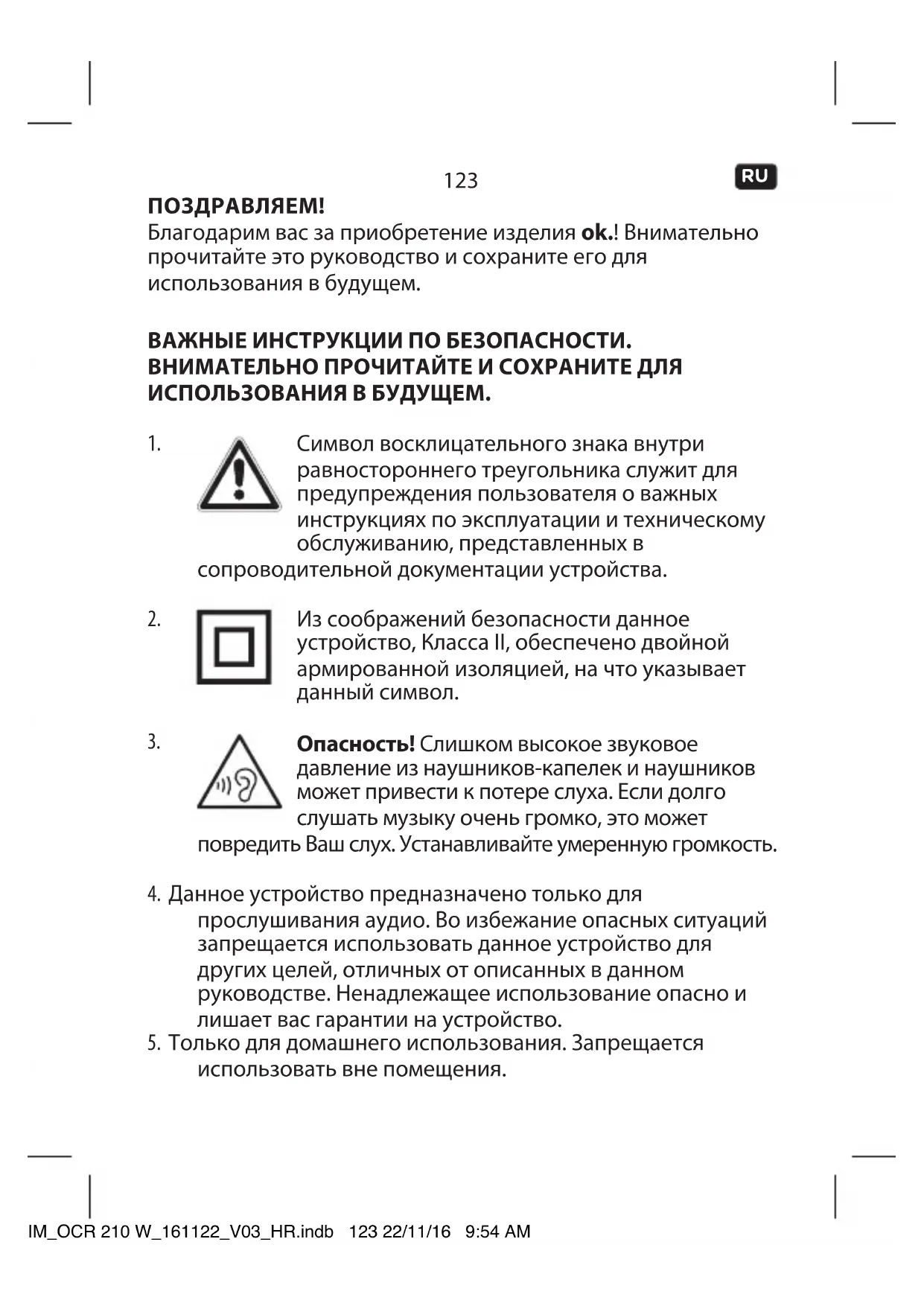 использовать вне помещения. IM_OCR 210 W_161122_V03_HR.indb 123 22/11/16 9:54 AM124