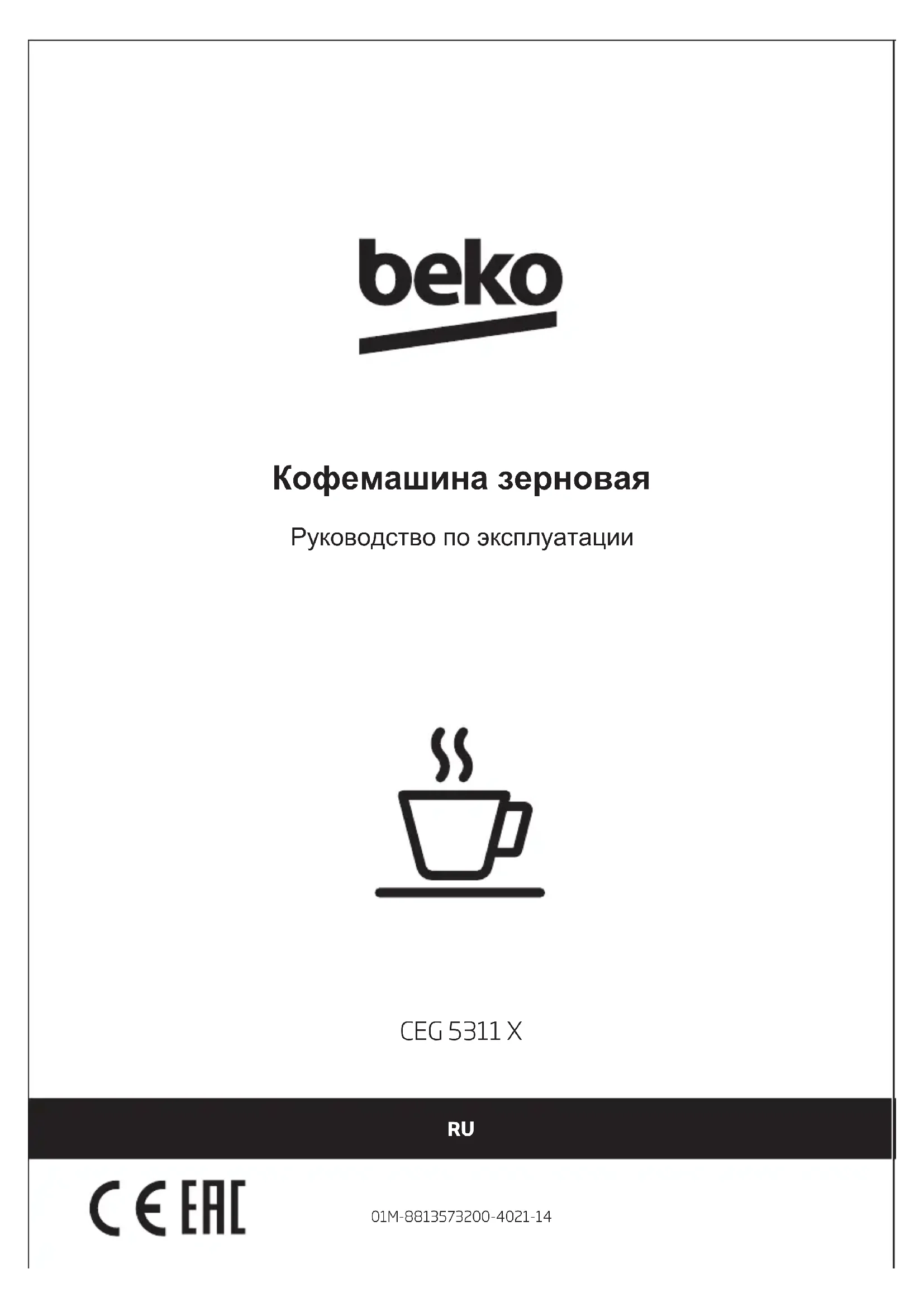CEG5311X - Кофемашина BEKO - Бесплатное руководство пользователя