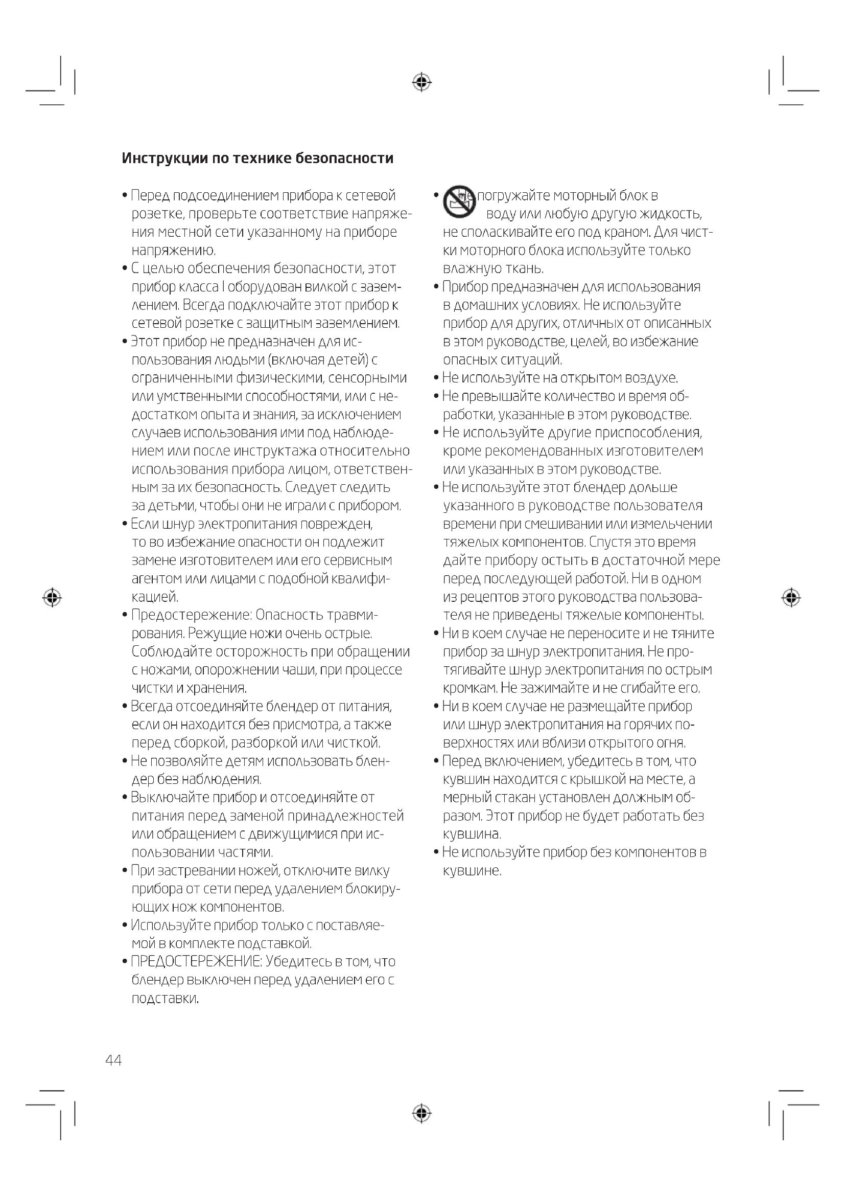 - Предостережение:Опасностьтравми- рования.Режущиеножиоченьострые. Соблюдайтеосторожностьприобращении сножами,опорожнениичаши,припроцессе чисткиихранения.