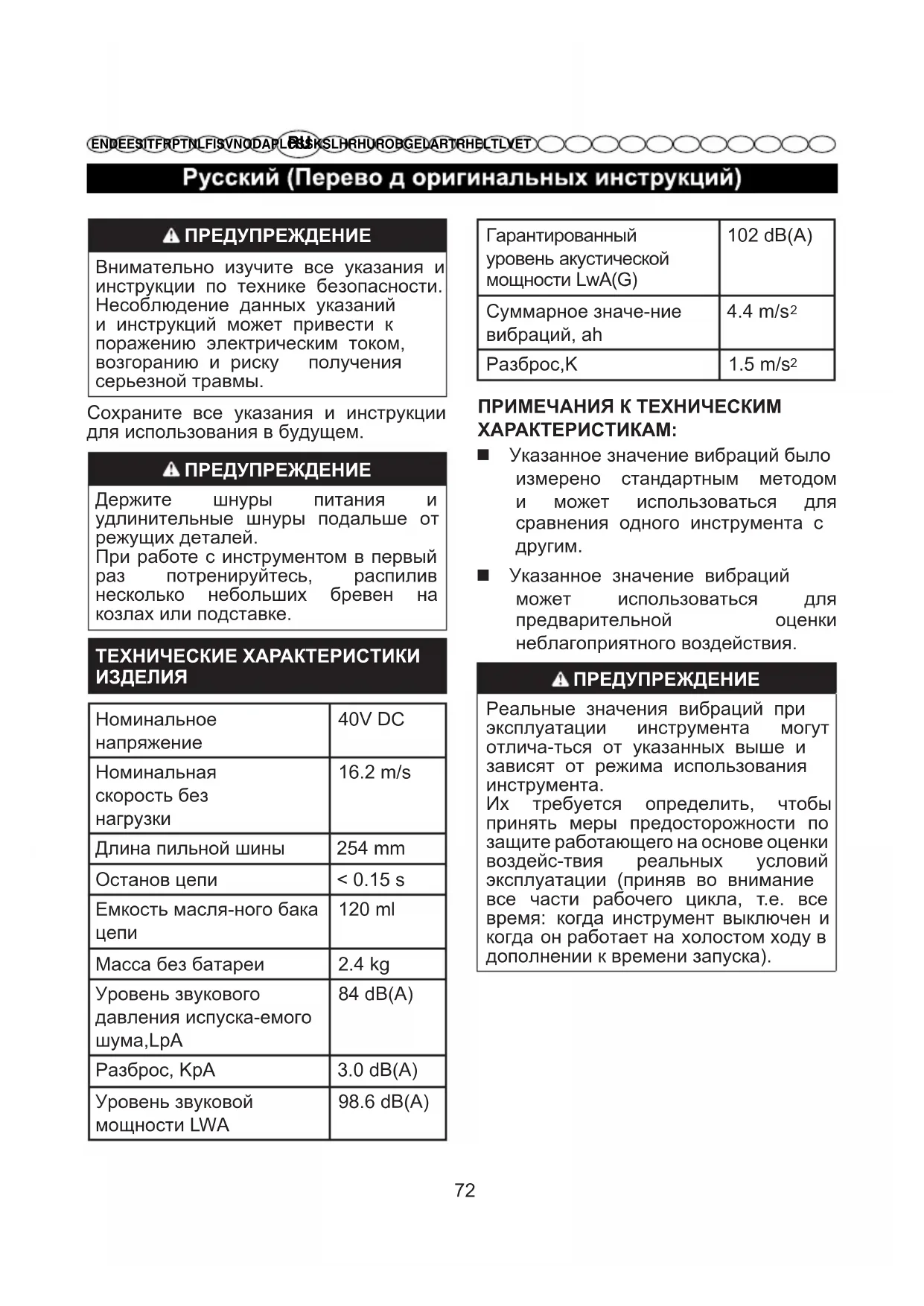 БЕСПРОВОДНАЯ ЦЕПНАЯ ПИЛА 40В РУКОВОДСТВО ПО ЭКСПЛУАТАЦИИ 40V LANGATON MOOTTORISAHA KÄYTTÄJÄN KÄSIKIRJA