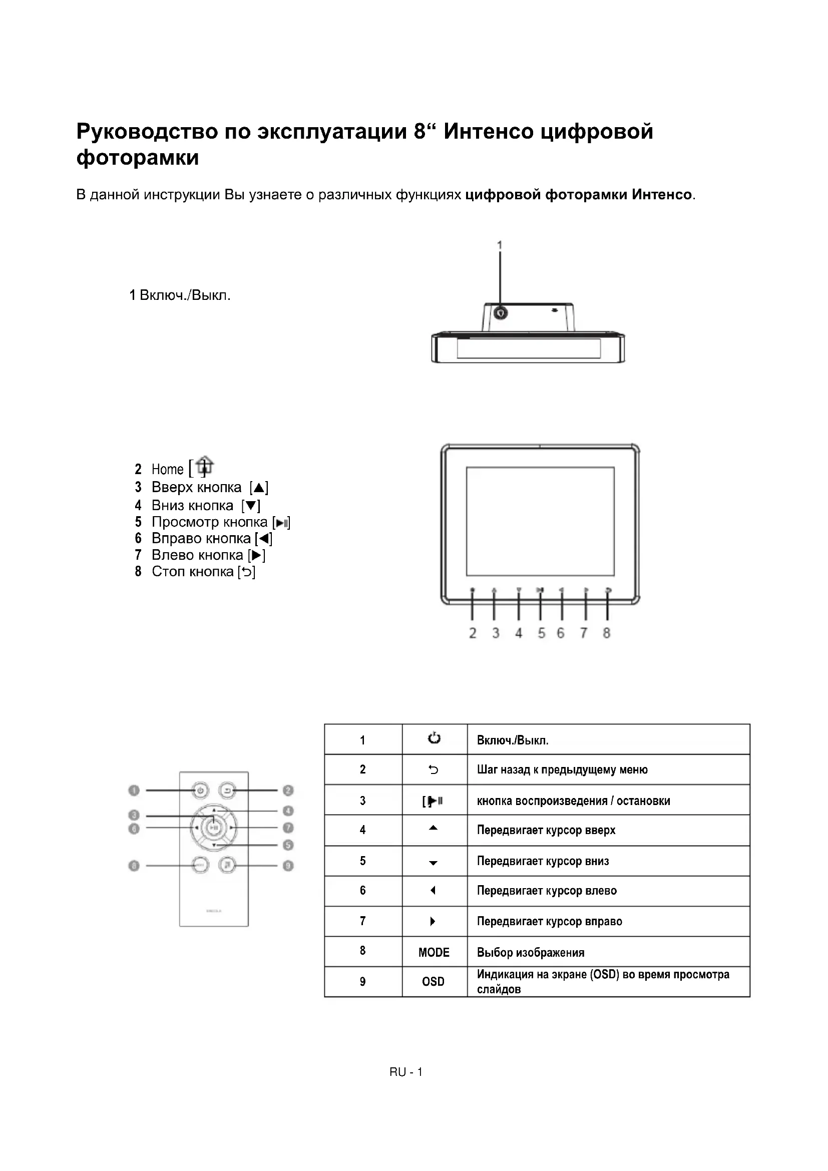 В данной инструкции Вы узнаете о различных функциях цифровой фоторамки Интенсо.
