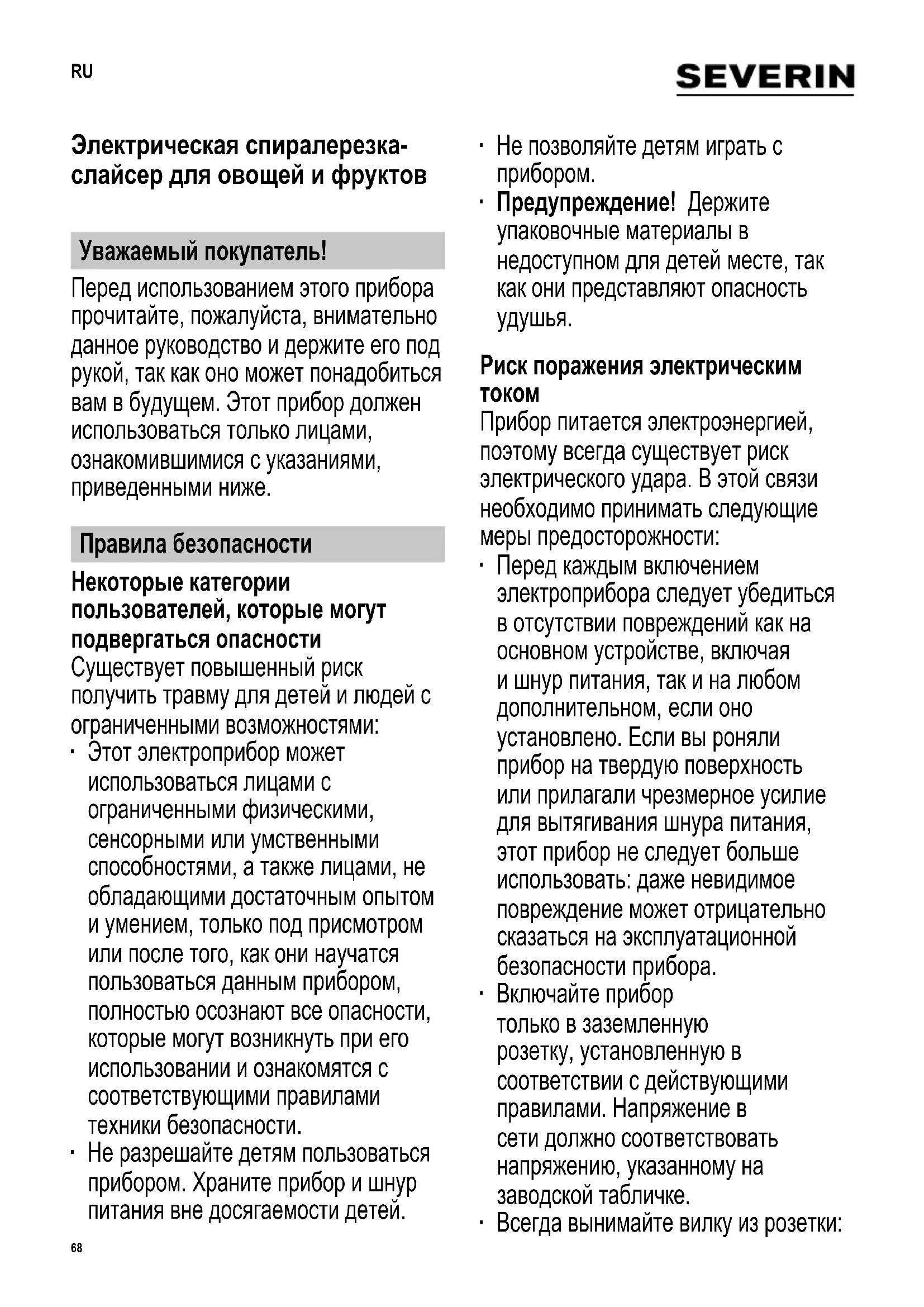 RU Руководство по эксплуатации Электрическая спиралерезка-слайсер для овощей и фруктов 68
