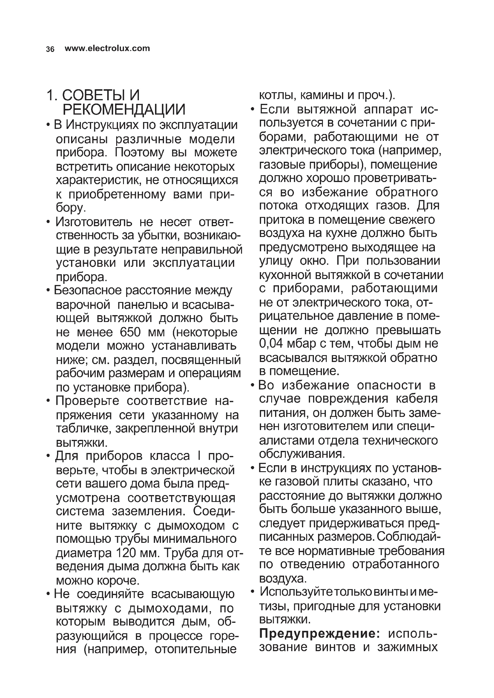 - Для приборов класса I про- верьте, чтобы в электрической сети вашего дома была пред- усмотрена соответствующая система заземления. Соеди- ните вытяжку с дымоходом с помощью трубы минимального диаметра 120 мм. Труба для от- ведения дыма должна быть как можно короче.