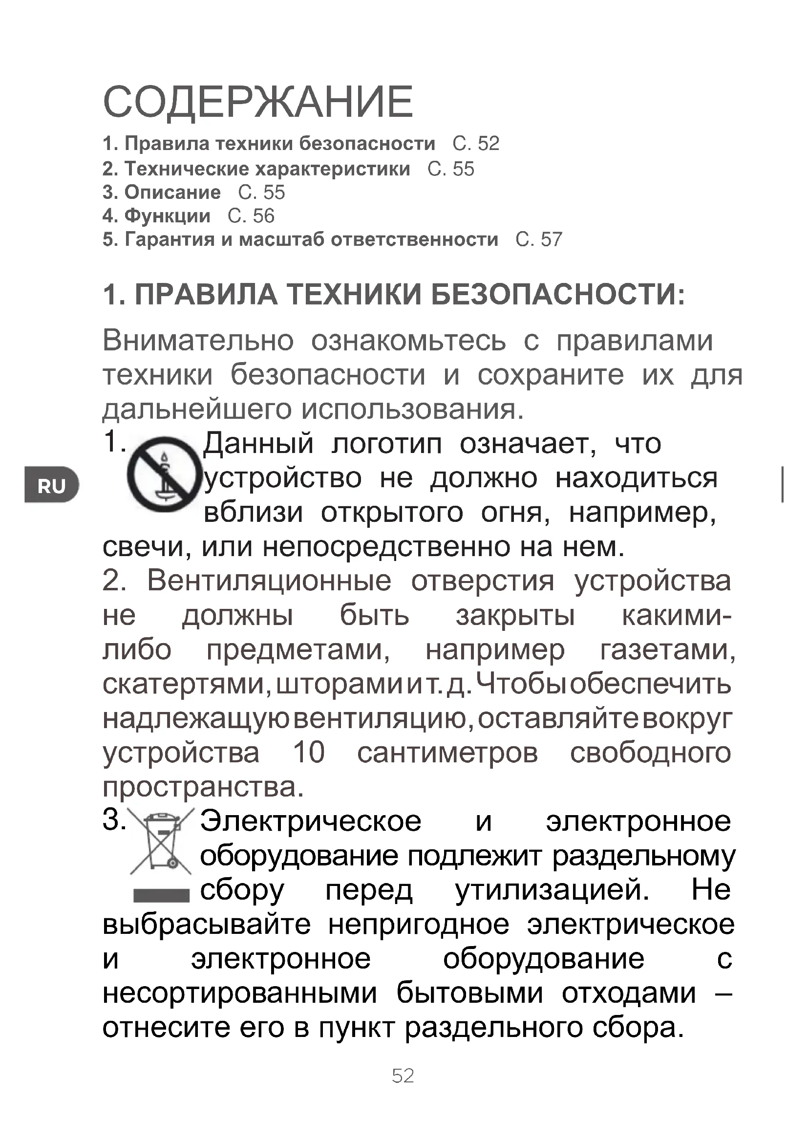 Электрическое и электронное оборудование подлежит раздельному сбору перед утилизацией. Не выбрасывайте непригодное электрическое и электронное оборудование с несортированными бытовыми отходами – отнесите его в пункт раздельного сбора.53