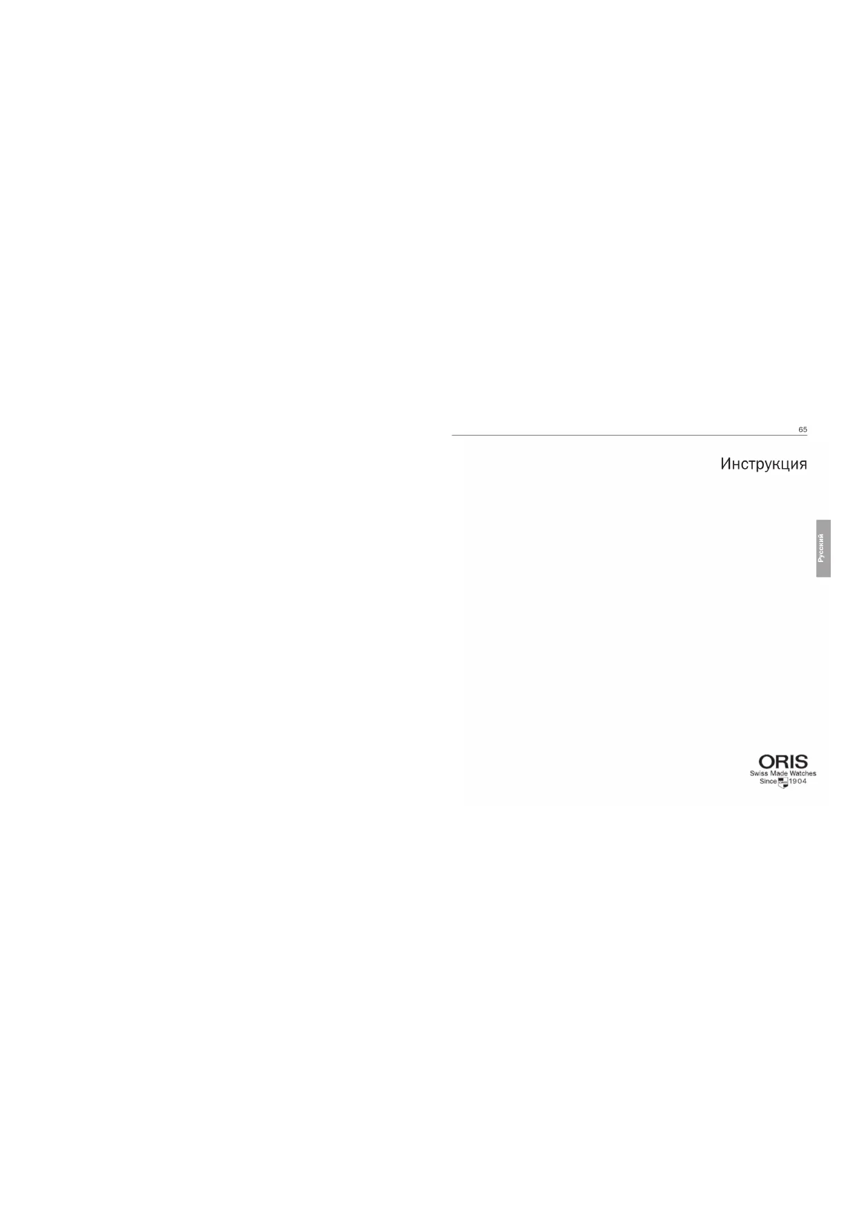 РусскийМы благодарим Вас за приобре- тение часов Oris и тепло привет- ствуем Вас как ценителя механи- ческих часов. Вы убедитесь в том, что мир Oris вращается во- круг механики. Для нас в часо- вом деле не существует ничего, кроме механики. Ваши часы Oris уверенно пози- ционируют себя вне зоны массо- вого рынка и модных товаров. Вместо этого они олицетворяют действительные ценности ча- сового искусства Швейцарии, ха- рактеризуемые потрясающими микромеханическими конструк- циями механизмов и безупречно стильным дизайном. Часы Oris не только унаследовали тради- ции, заложенные в 1904 году, но также восприняли доведённую до совершенства систему High- Mech, проникнутую мастерством наших часовых мастеров и раз- работанную совместными уси- лиями с известными профессио- налами из миров гонок «Фор- мулы 1», дайвинга и авиации. И ещё одно очень важное для со- временности свойство: часам Oris не нужны батарейки, потому что Вы сами своими движениями питаете энергией Ваши часы Oris, либо заводите их вручную. Я приглашаю Вас посетить наш сайт в Интернете www.oris.ch, где Вы найдёте больше информации и сможете продлить гарантийный период, присоединившись к экс- клюзивному клубу MyOris. Мы желаем Вам хороших времён с Вашими часами Oris. Ульрих В.Герцог,