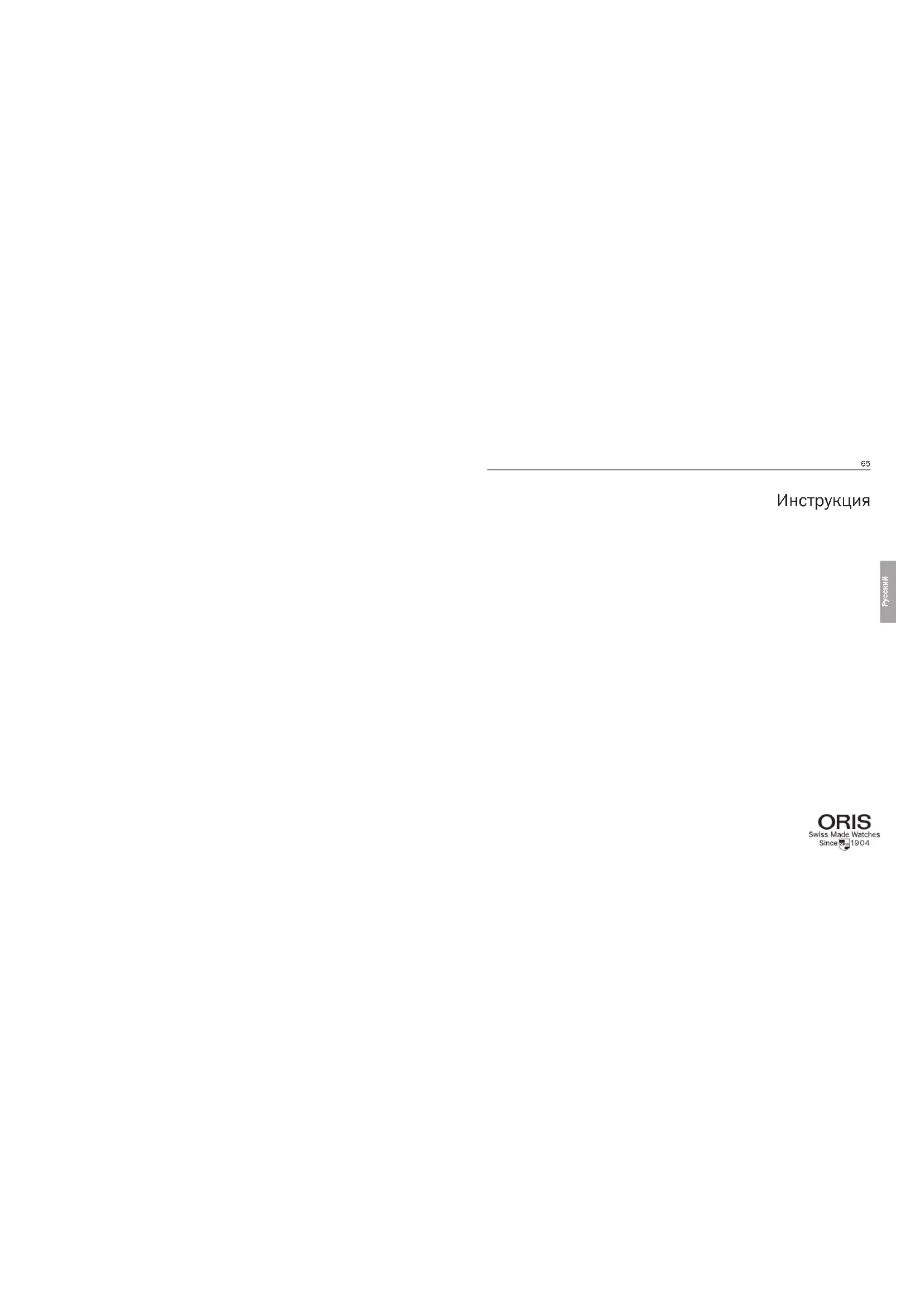 РусскийМы благодарим Вас за приобре- тение часов Oris и тепло привет- ствуем Вас как ценителя механи- ческих часов. Вы убедитесь в том, что мир Oris вращается во- круг механики. Для нас в часо- вом деле не существует ничего, кроме механики. Ваши часы Oris уверенно пози- ционируют себя вне зоны массо- вого рынка и модных товаров. Вместо этого они олицетворяют действительные ценности ча- сового искусства Швейцарии, ха- рактеризуемые потрясающими микромеханическими конструк- циями механизмов и безупречно стильным дизайном. Часы Oris не только унаследовали тради- ции, заложенные в 1904 году, но также восприняли доведённую до совершенства систему High- Mech, проникнутую мастерством наших часовых мастеров и раз- работанную совместными уси- лиями с известными профессио- налами из миров гонок «Фор- мулы 1», дайвинга и авиации. И ещё одно очень важное для со- временности свойство: часам Oris не нужны батарейки, потому что Вы сами своими движениями питаете энергией Ваши часы Oris, либо заводите их вручную. Я приглашаю Вас посетить наш сайт в Интернете www.oris.ch, где Вы найдёте больше информации и сможете продлить гарантийный период, присоединившись к экс- клюзивному клубу MyOris. Мы желаем Вам хороших времён с Вашими часами Oris. Ульрих В.Герцог,