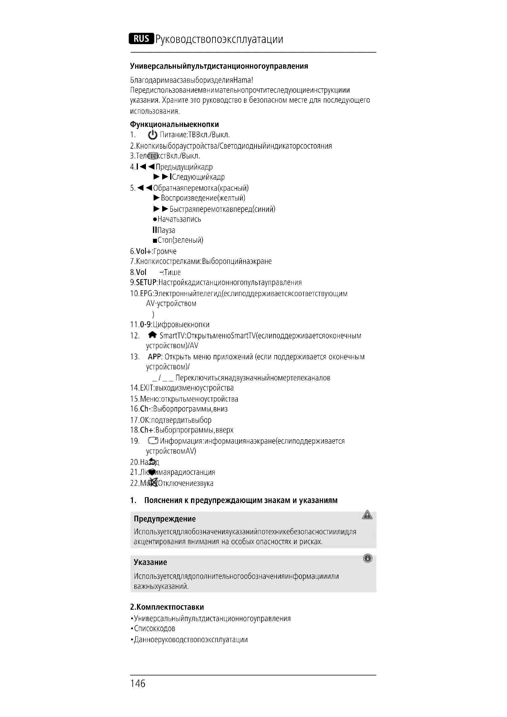 - Универсальный пульт дистанционного управления, как ивсе электрические приборы, следует беречь от детей!