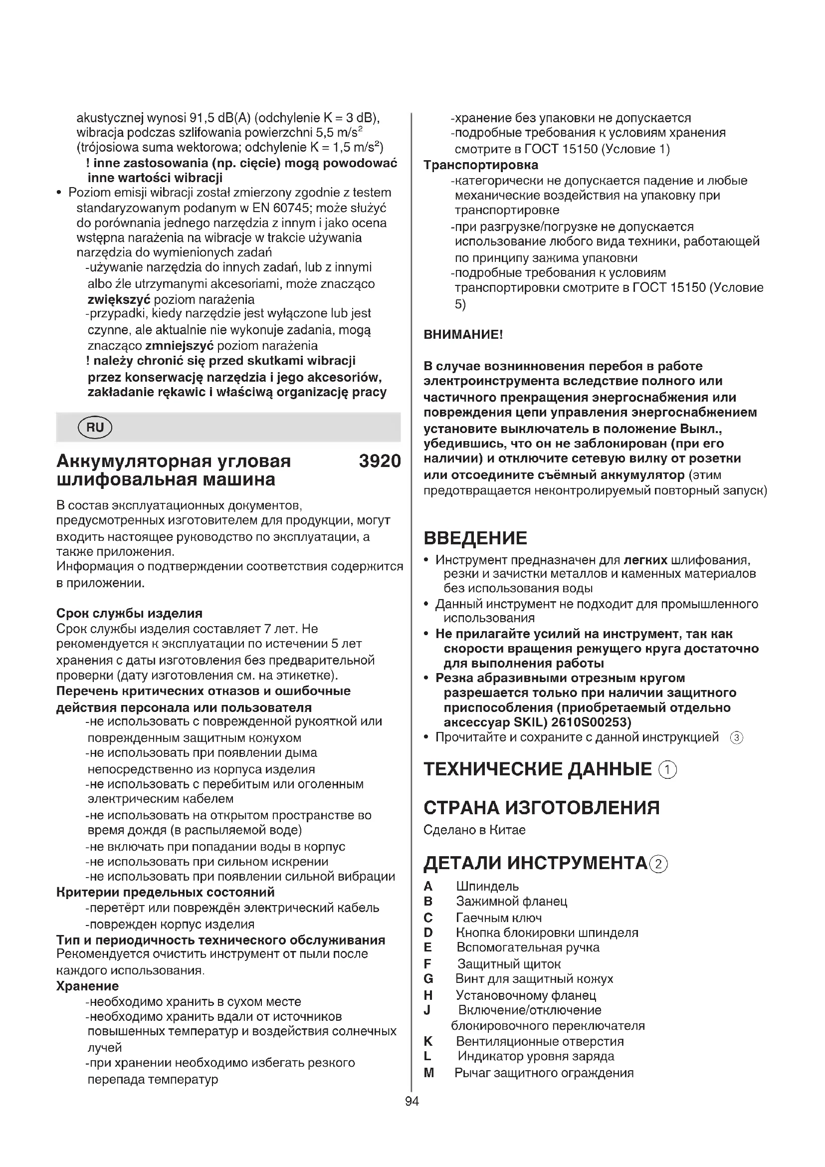 РУКОВОДСТВО ПОЛЬЗОВАТЕЛЯ 3920 CA SKIL