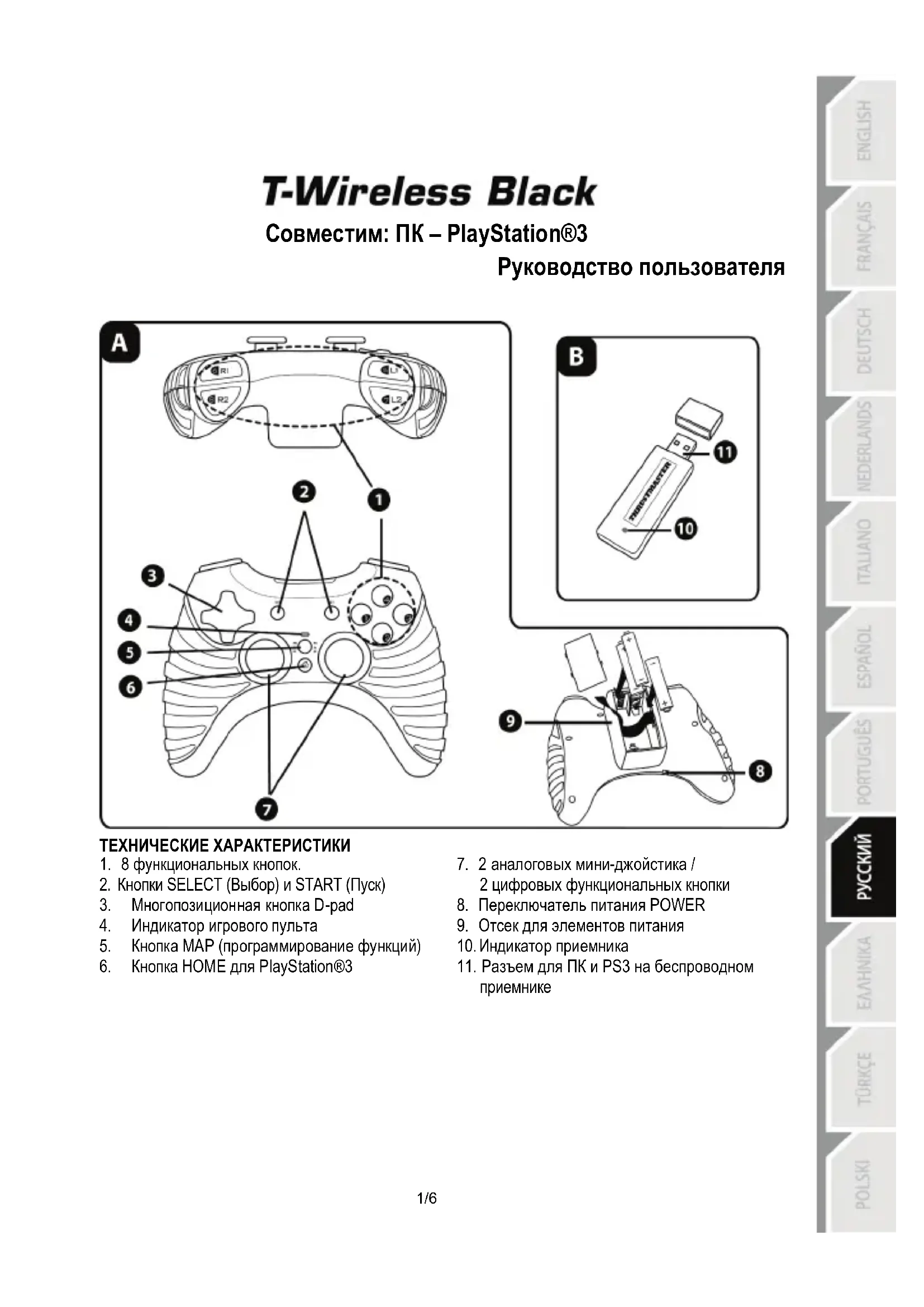 РУКОВОДСТВО ПОЛЬЗОВАТЕЛЯ TWireless Black (PlayStation 3) THRUSTMASTER