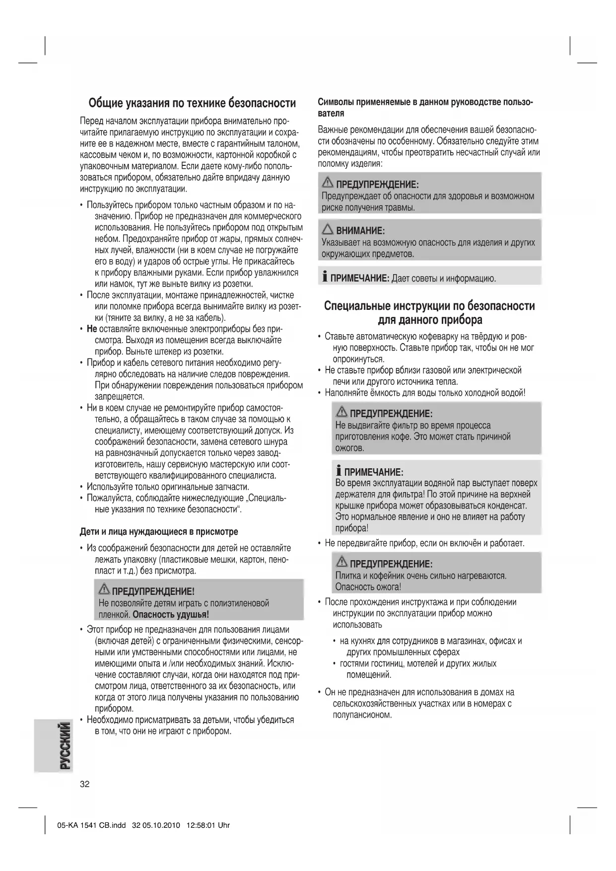 - Он не предназначен для использования в домах на сельскохозяйственных участках или в номерах с полупансионом. 05-KA 1541 CB.indd 32 05.10.2010 12:58:01 Uhr33