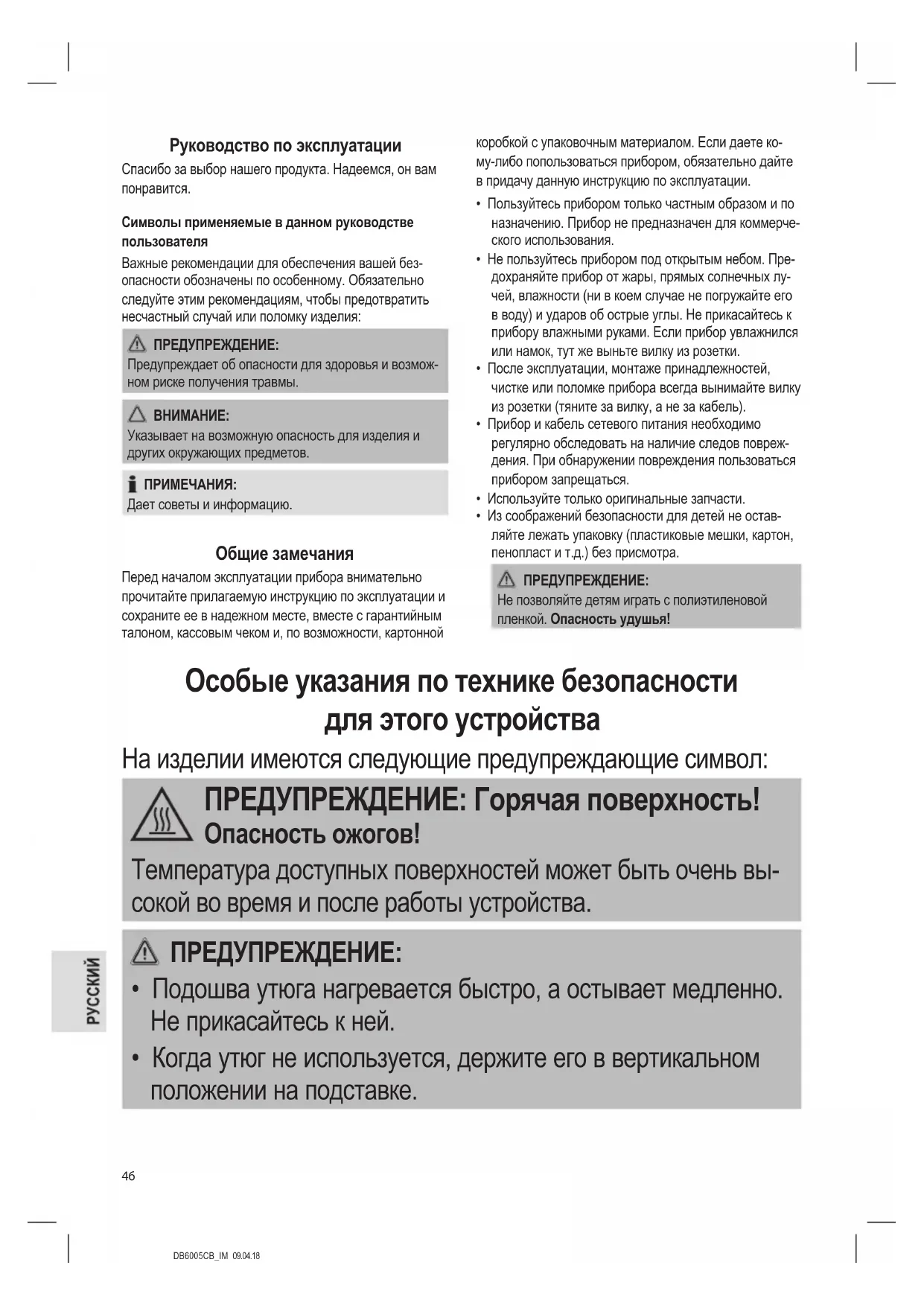 - Чистка и технический обслуживание прибора детьми не допускается.DB6005CB_IM 09.04.18