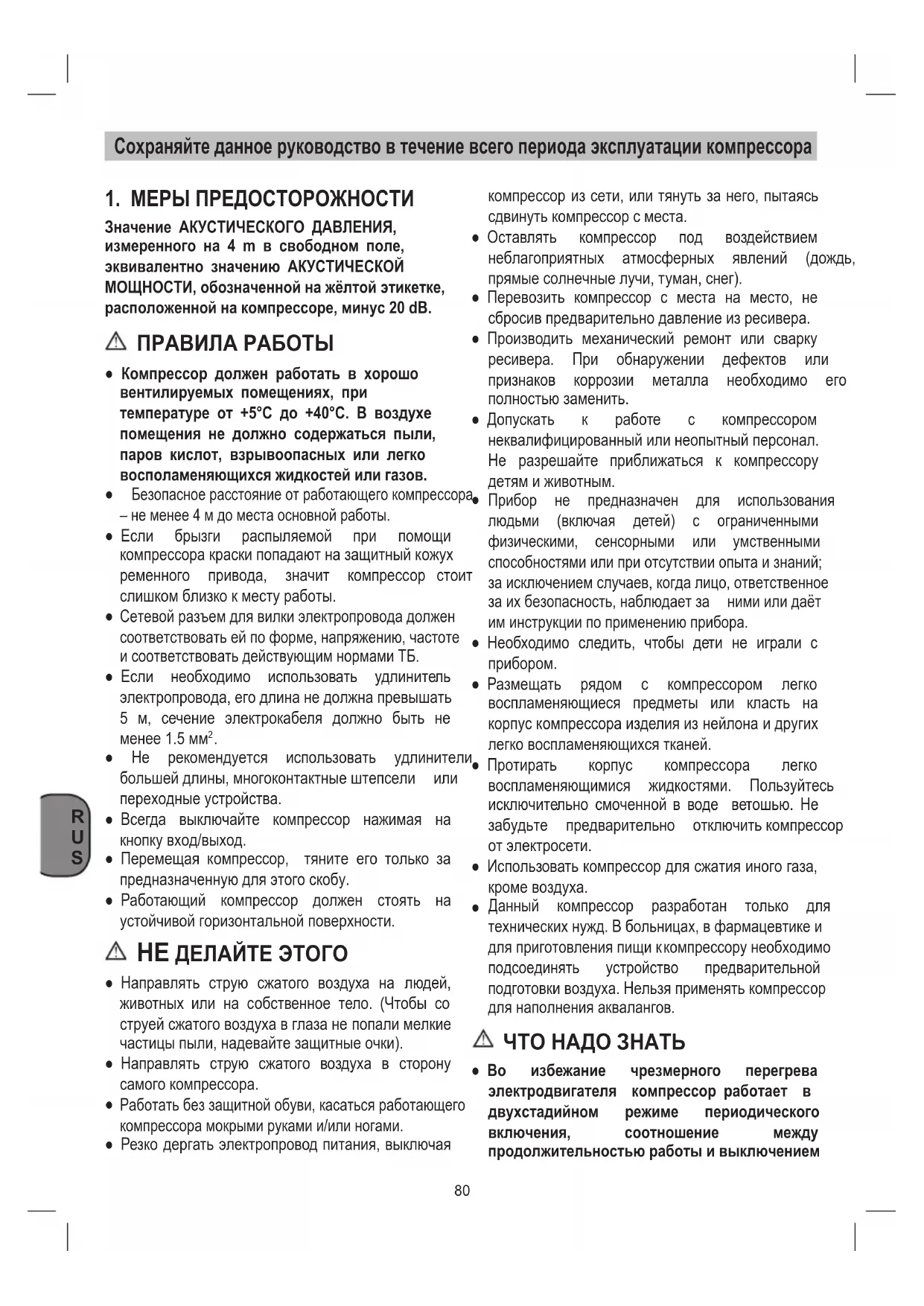 Uschovajtetútopríručkuspokynminaobsluhuprístrojatak,abystemohlidonejkedykoľveknahliadnúť RUS Сохраняйтеданноеруководствовтечениевсегопериодаэксплуатациикомпрессора