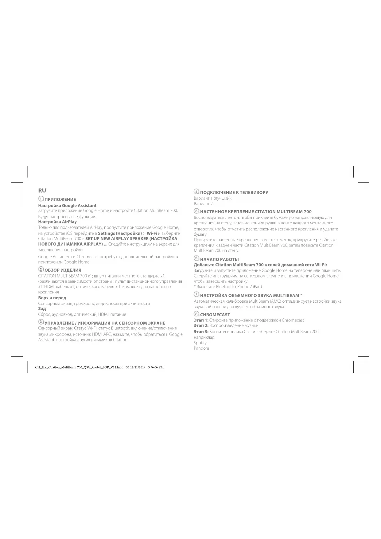 НАЧАЛО РАБОТЫ Добавьте Citation MultiBeam 700 к своей домашней сети Wi-Fi: Загрузите и запустите приложение Google Home на телефоне или планшете. Следуйте инструкциям на сенсорном экране и в приложении Google Home, чтобы завершить настройку