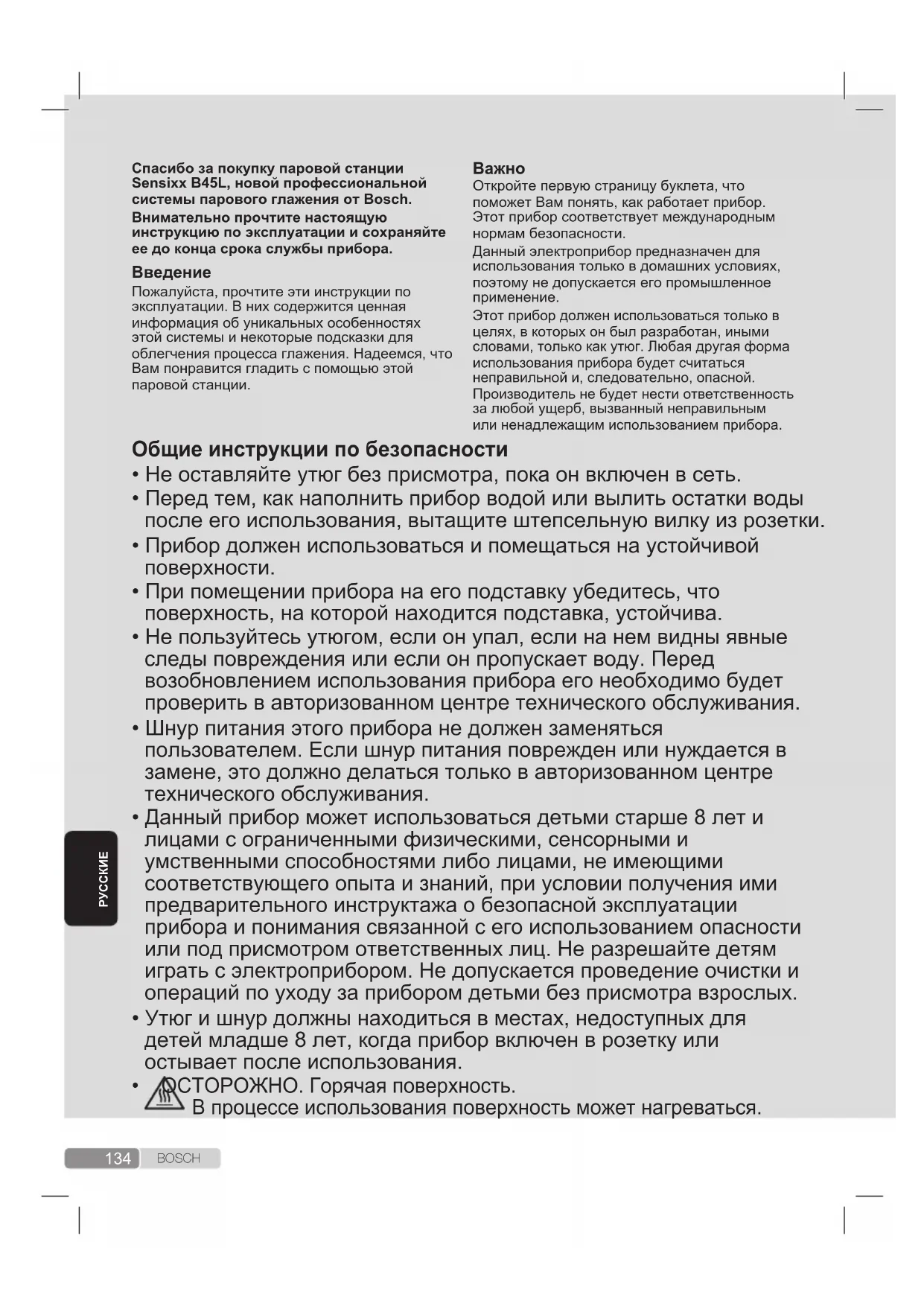 Данийпосібникможназавантажитизукраїськоївеб-сторінкиBosch.134 B O S C H Спасибозапокупкупаровойстанции SensixxB45L,новойпрофессиональной системыпаровогоглаженияотBosch. Внимательнопрочтитенастоящую инструкциюпоэксплуатацииисохраняйте еедоконцасрокаслужбыприбора.