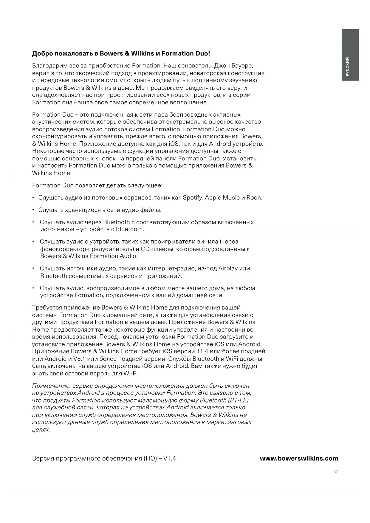 РУКОВОДСТВО ПОЛЬЗОВАТЕЛЯ Formation Duo BOWERS & WILKINS