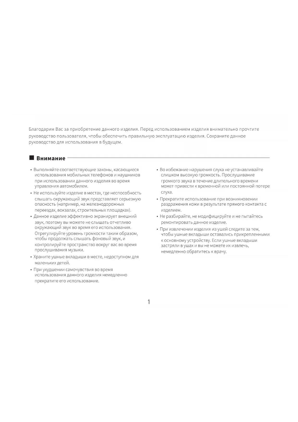 - Ушные вкладыши плотно крепятся на изделие, чтобы исключить возможность их случайного отсоединения.1 感谢您购买本产品。在使用产品之前,请全文浏览本用户手册以确保您将正确地使用本产品。请妥善保管本手册以