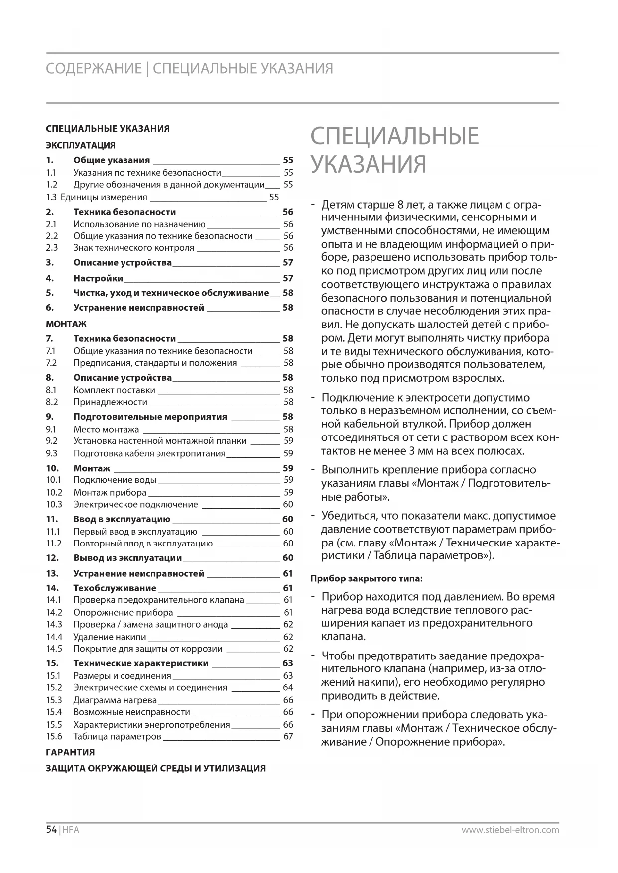 !ЭКСПЛУАТАЦИЯ Техника безопасности 56 | HFA www.stiebel-eltron.com