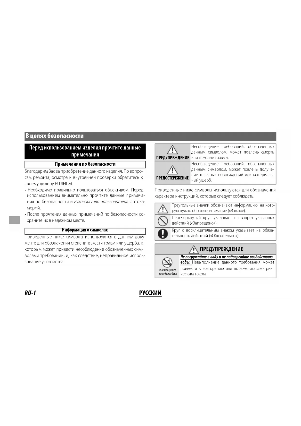 Примечания по безопасности Благодарим Вас за приобретение данного изделия. По вопро- сам ремонта, осмотра и внутренней проверки обратитесь к своему дилеру FUJIFILM.