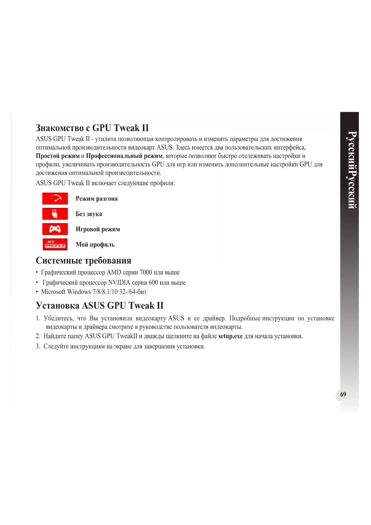- Microsoft Windows 7/8/8.1/10 32-/64-бит Установка ASUS GPU Tweak II