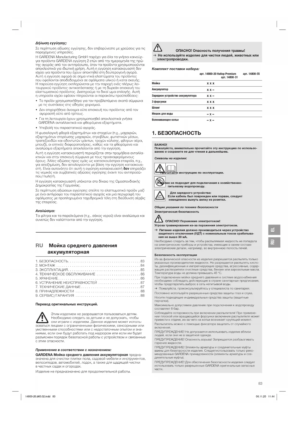 ПРЕДУПРЕЖДЕНИЕ! Не допускается использовать изделие вблизи людей, если они не в защитной одежде. ПРЕДУПРЕЖДЕНИЕ! Опасность взрыва! Запрещается разбрызгивать горючие жидкости. ПРЕДУПРЕЖДЕНИЕ! Элементы арматуры и соединительные муфты важны для безопасности изделия. Следуетиспользовать только реко- мендованные GARDENA принадлежности (элементы арматуры и сое- динительные муфты). ПРЕДУПРЕЖДЕНИЕ! Для обеспечения безопасности изделия следует использовать только разрешенные GARDENA оригинальные запасные