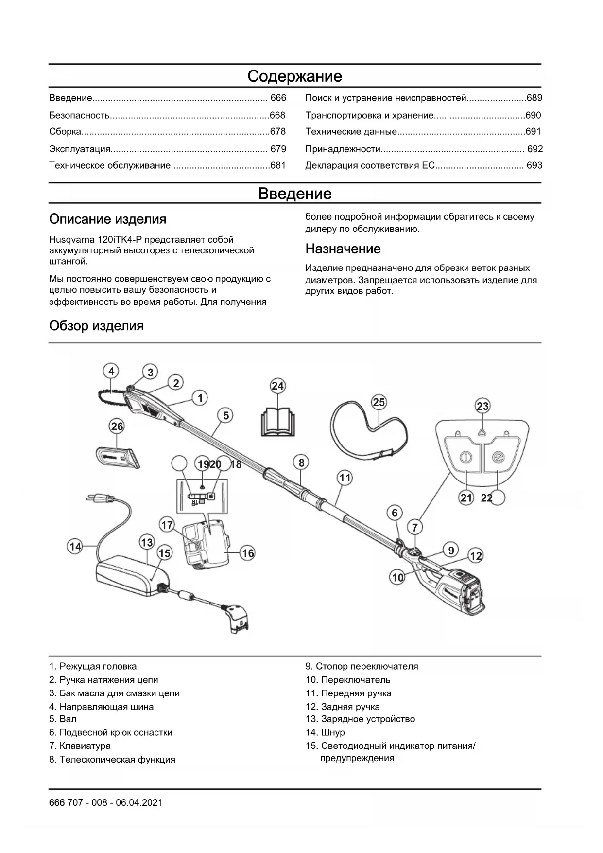 Описание изделия Husqvarna 120iTK4-P представляет собой аккумуляторный высоторез с телескопической