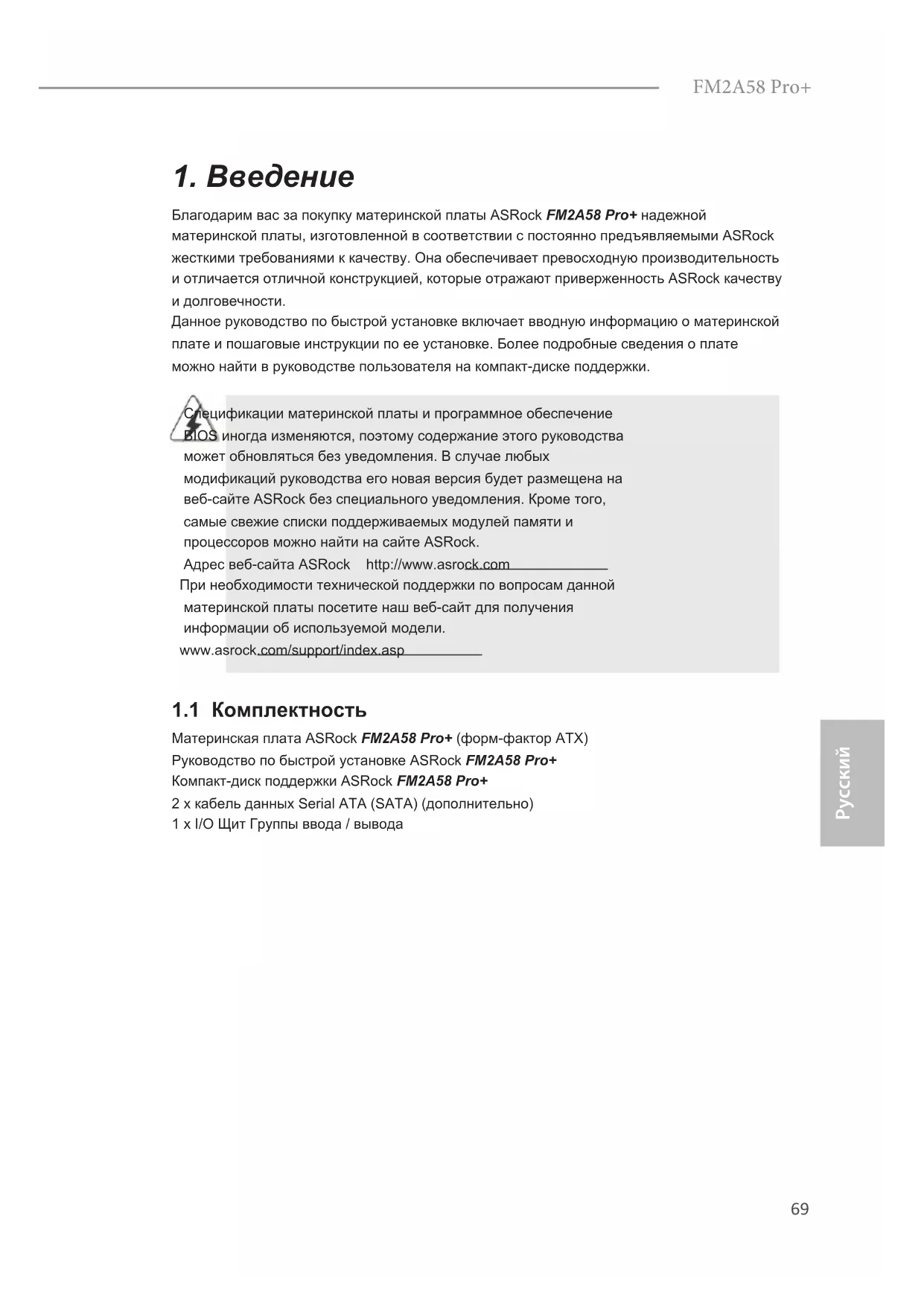 РУКОВОДСТВО ПОЛЬЗОВАТЕЛЯ FM2A58 Pro+ ASROCK