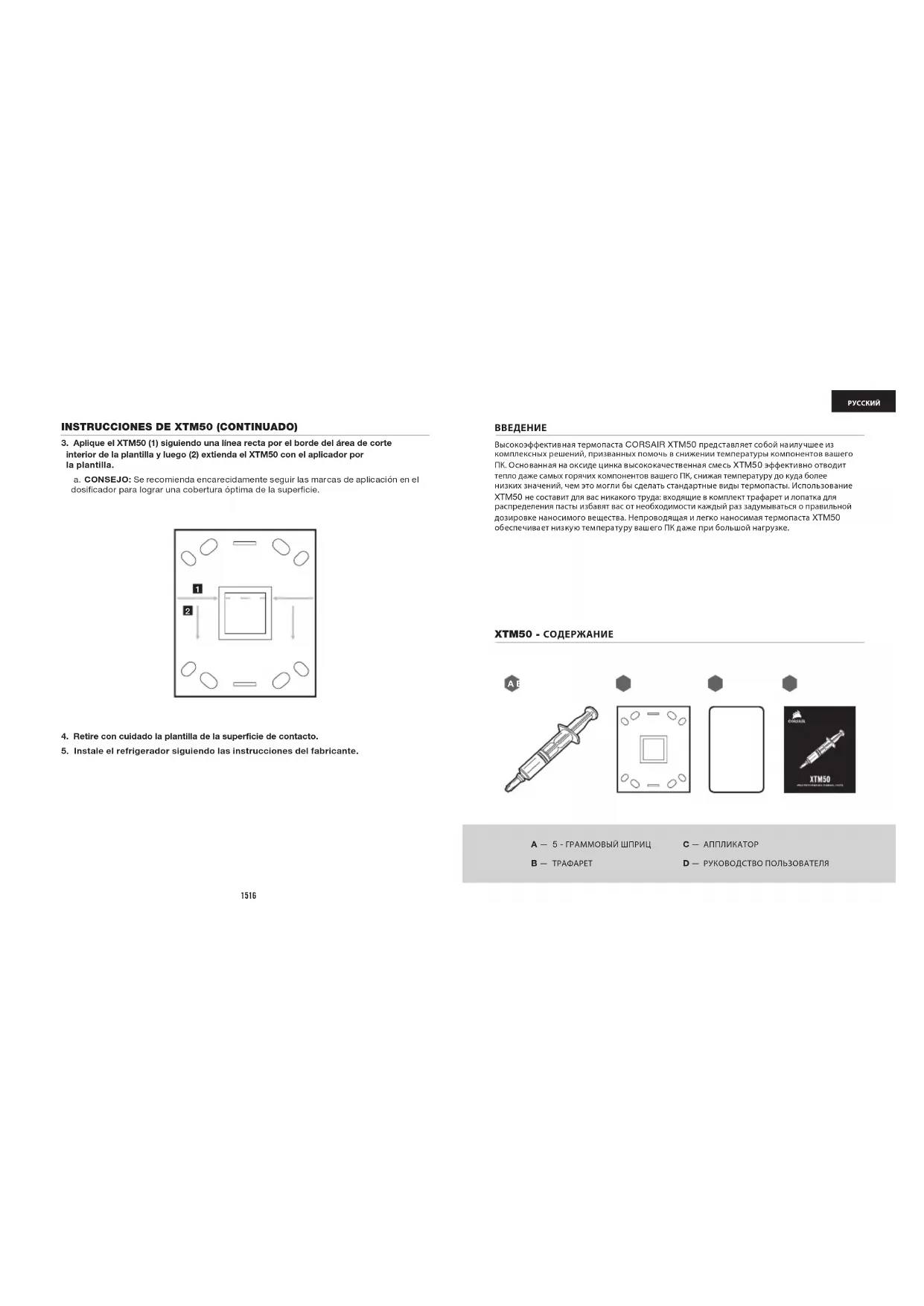 A — 5 - ГРАММОВЫЙ ШПРИЦ B — ТРАФАРЕТ C — АППЛИКАТОР D — РУКОВОДСТВО ПОЛЬЗОВАТЕЛЯ XTM50 - СОДЕРЖАНИЕ A B C D17 18 PУССКИЙ ПРЕДУПРЕЖДЕНИЕ. Проявляйте осторожность при обращении с XTM50. Неправильное использование и (или) обращение может стать причиной нанесения вреда здоровью.