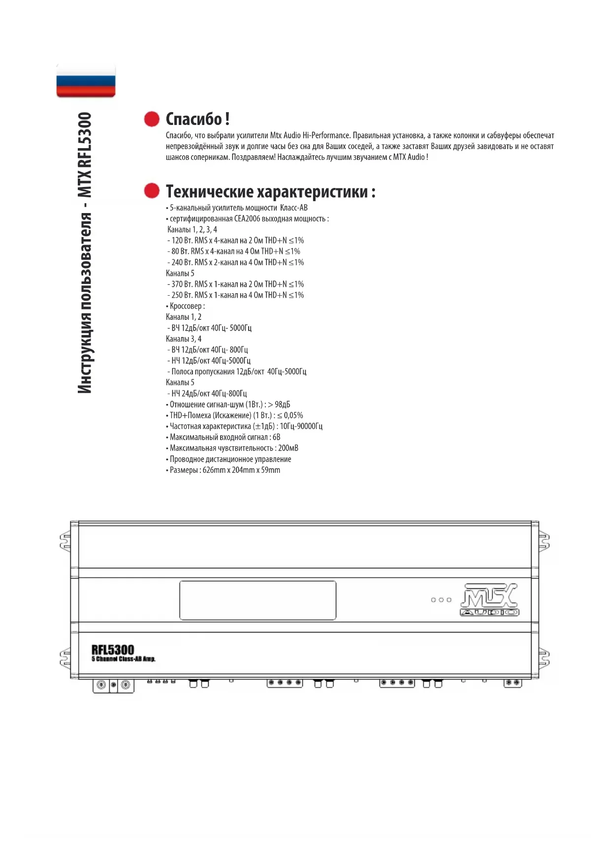 РУКОВОДСТВО ПОЛЬЗОВАТЕЛЯ RFL5300 MTX Audio