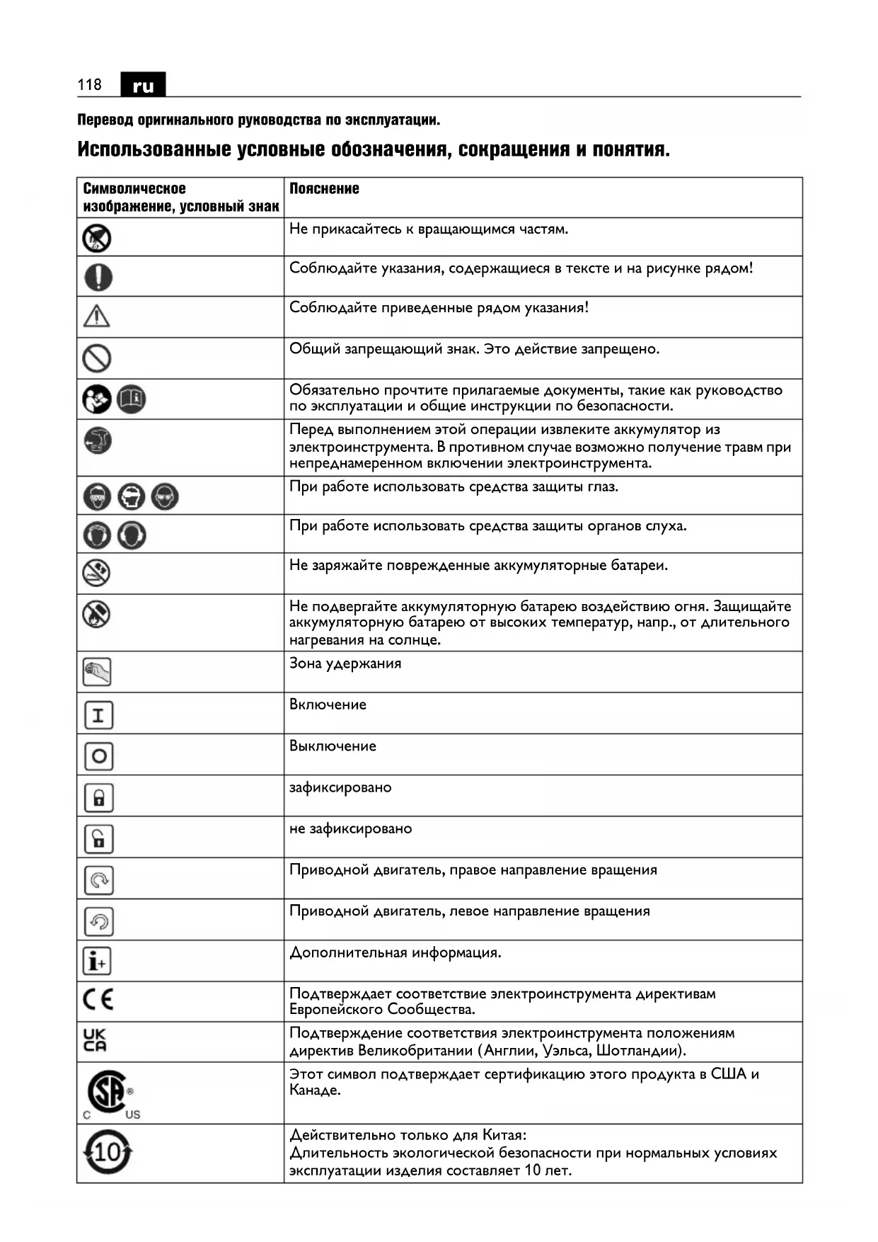 Перевод оригинального руководства по эксплуатации. Использованные условные обозначения, сокращения и понятия. Символическое изображение, условный знак