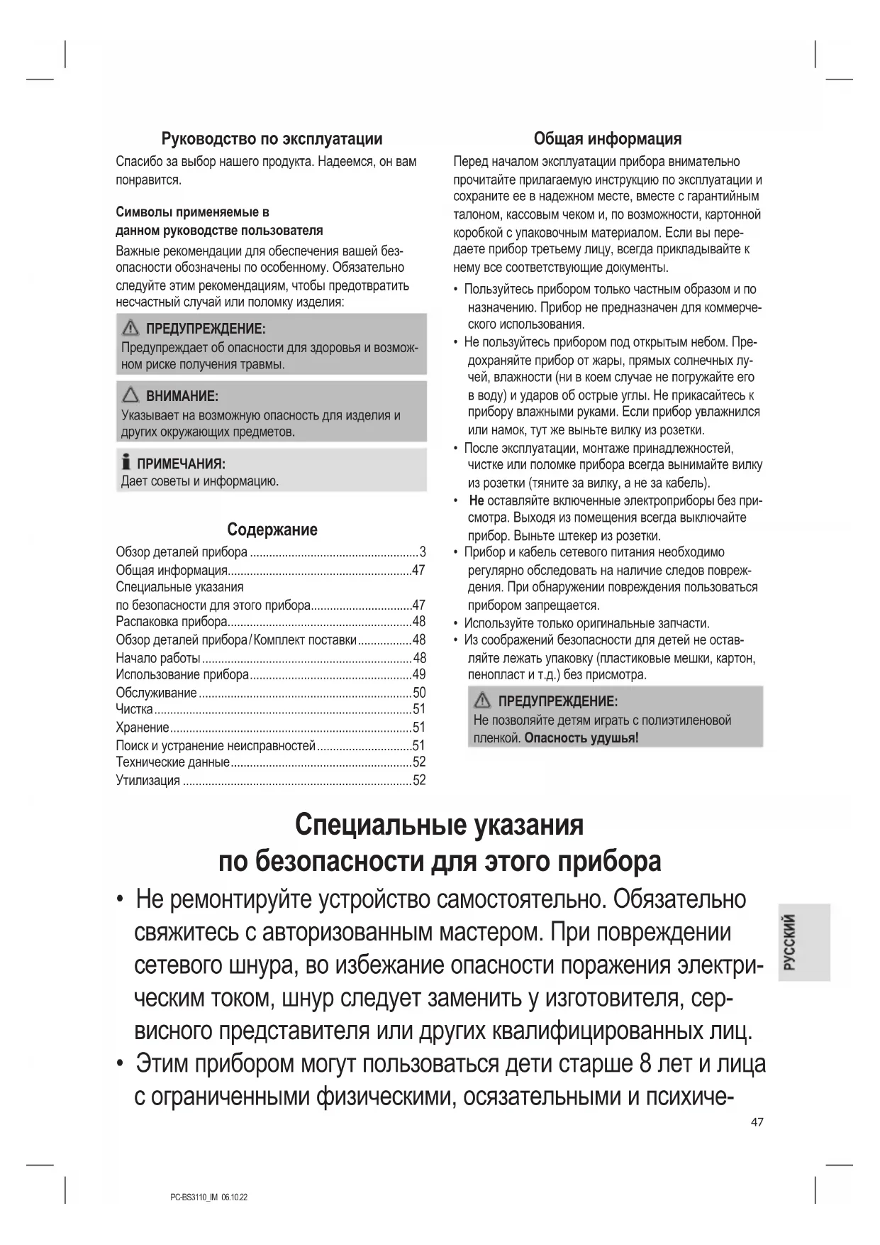 - Этим прибором могут пользоваться дети старше 8 лет и лица с ограниченными физическими, осязательными и психиче-PC-BS3110_IM 06.10.22