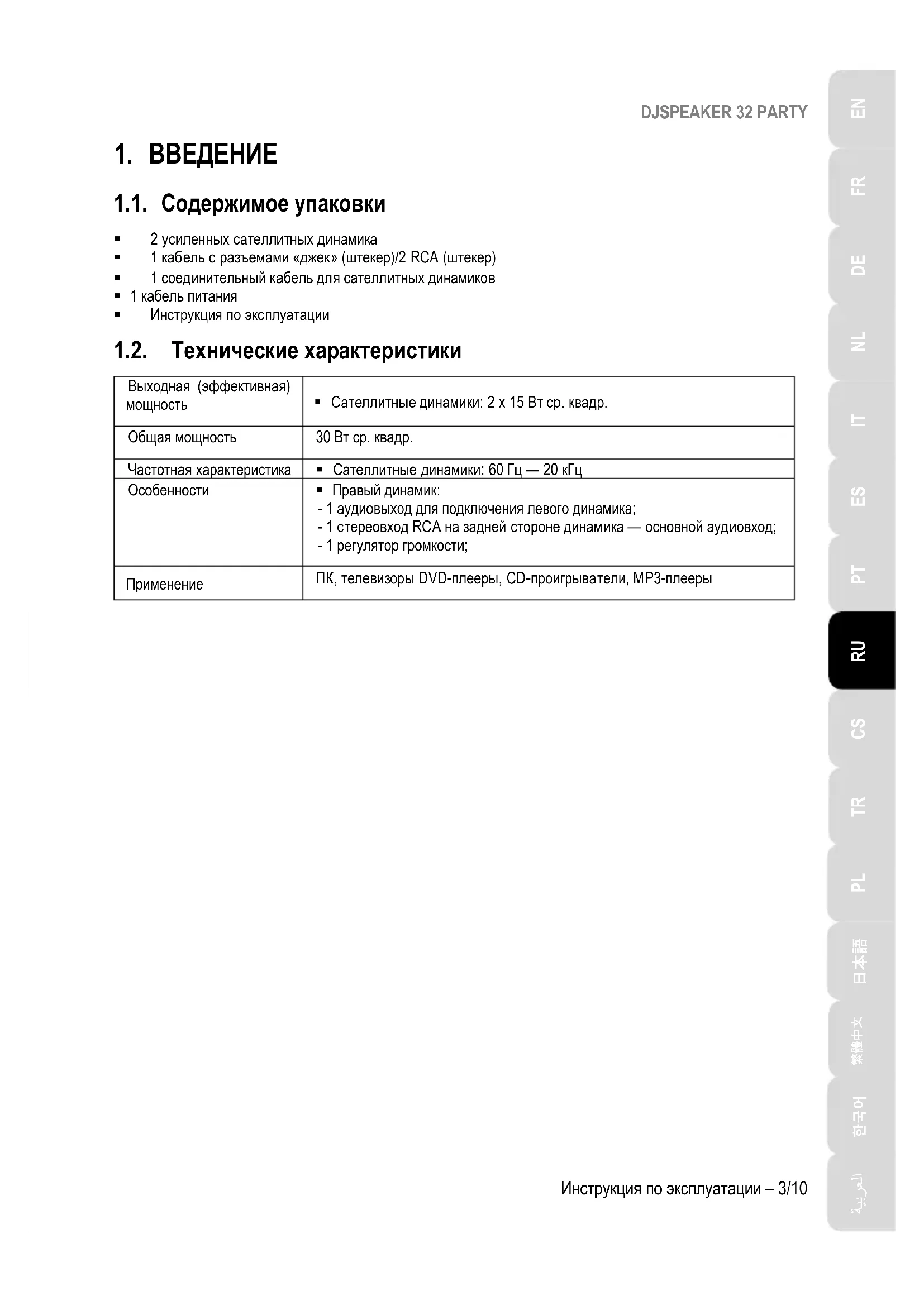 ﺔﯿﺑﺮﻌﻟاDJSPEAKER 32 PARTY 2/10 – Инструкция по эксплуатации