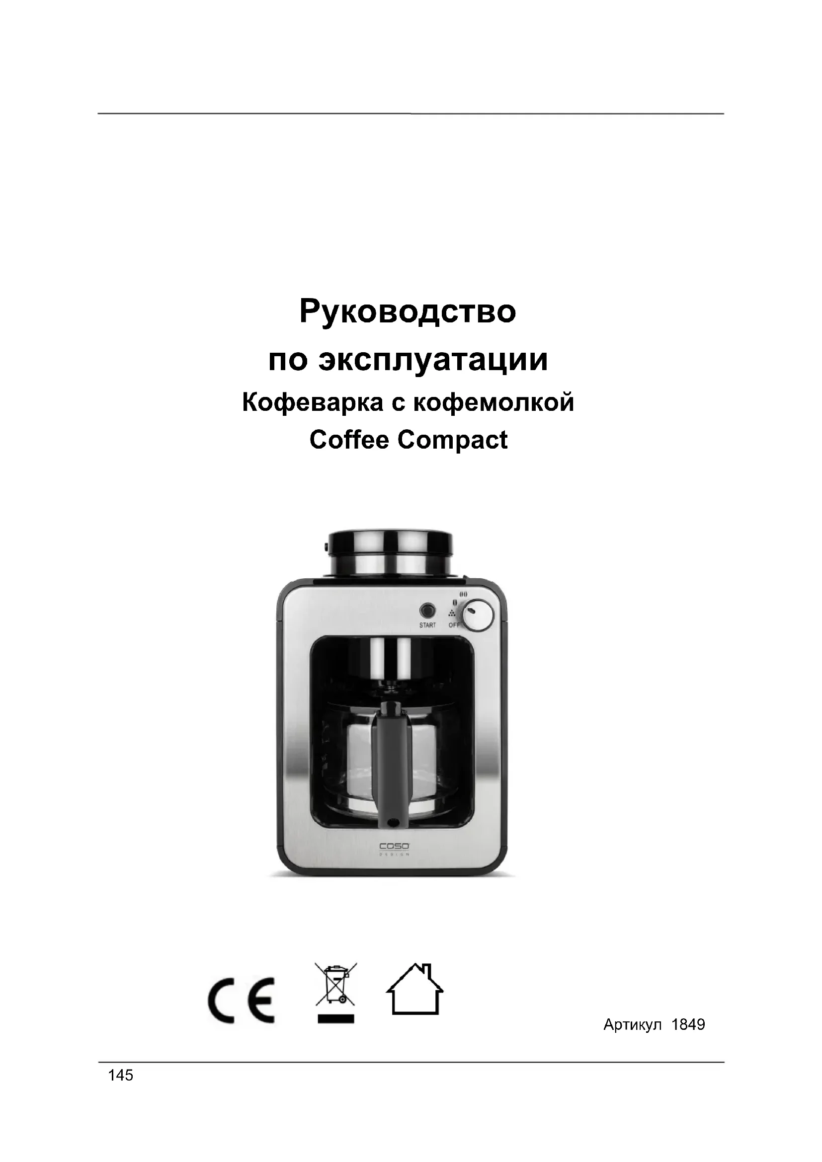 РУКОВОДСТВО ПОЛЬЗОВАТЕЛЯ Coffee Compact 1849 CASO
