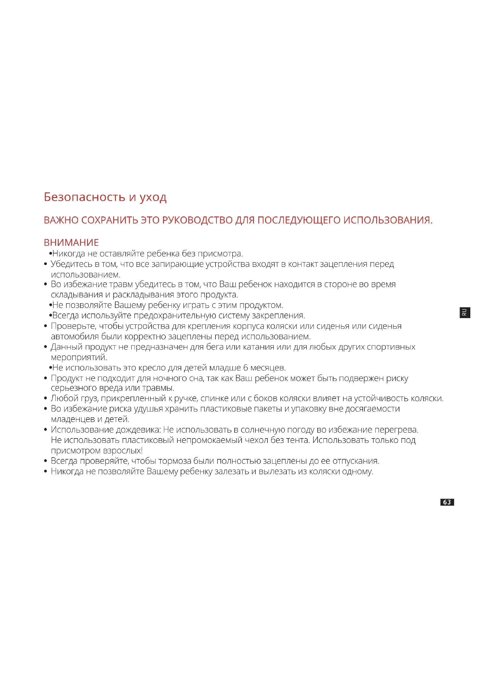 ТЕХНИКА БЕЗОПАСНОСТИ Наша продукция тщательно разработана и протестирована, чтобы обеспечить безопасность и комфорт ребенка. Соответствует требованиям по безопасности. Протестировано в лаборатории с правом проверки и аттестации в соответствии с постановлением № 91-1292 - Декабрь 1991 - EN1888:2012.