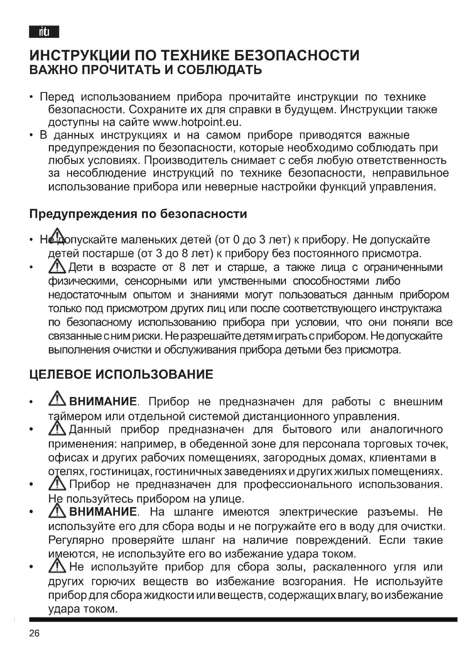 - Перед использованием прибора прочитайте инструкции по технике безопасности. Сохраните их для справки в будущем. Инструкции также доступны на сайте www.hotpoint.eu.